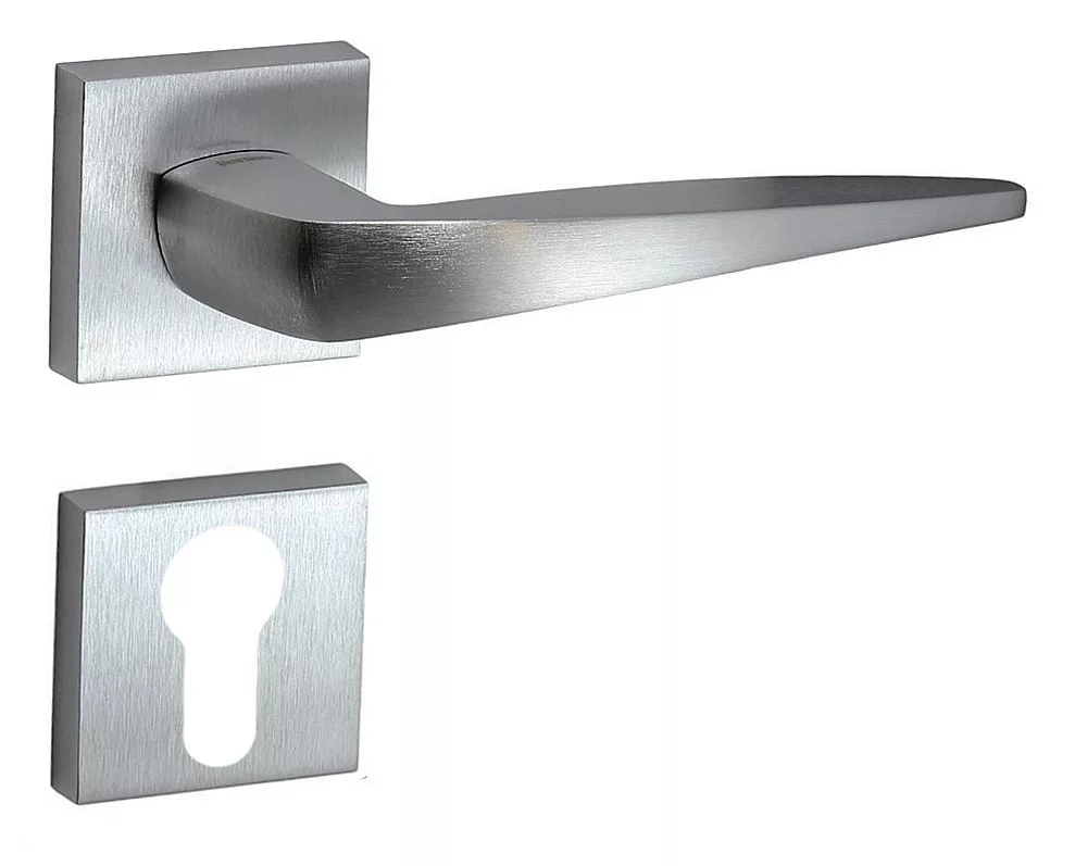 Mâner de ușă cromat mat pe rozetă pătrată fabricat în Italia