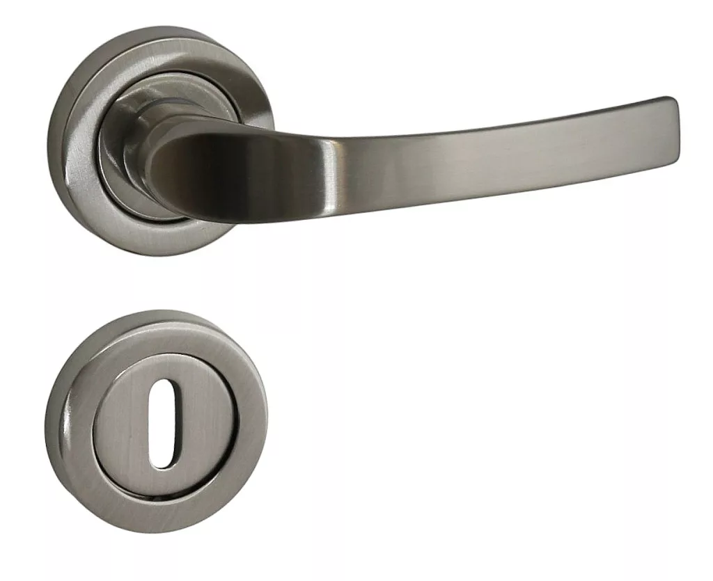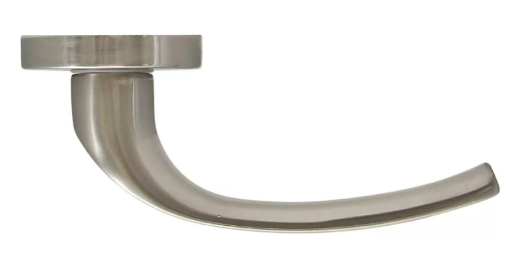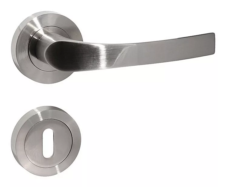Mânerul ușii cu rozetă PORTO, cu forma sa ușor curbată, este o completare excelentă atât pentru apartamentele clasice, cât și moderne, în stil elegant și sofisticat. Suprafața sa este din nichel satinat periat și conferă mânerului curbat o strălucire fină. Acest lucru nu este doar frumos, dar oferă și o aderență foarte plăcută utilizatorului!