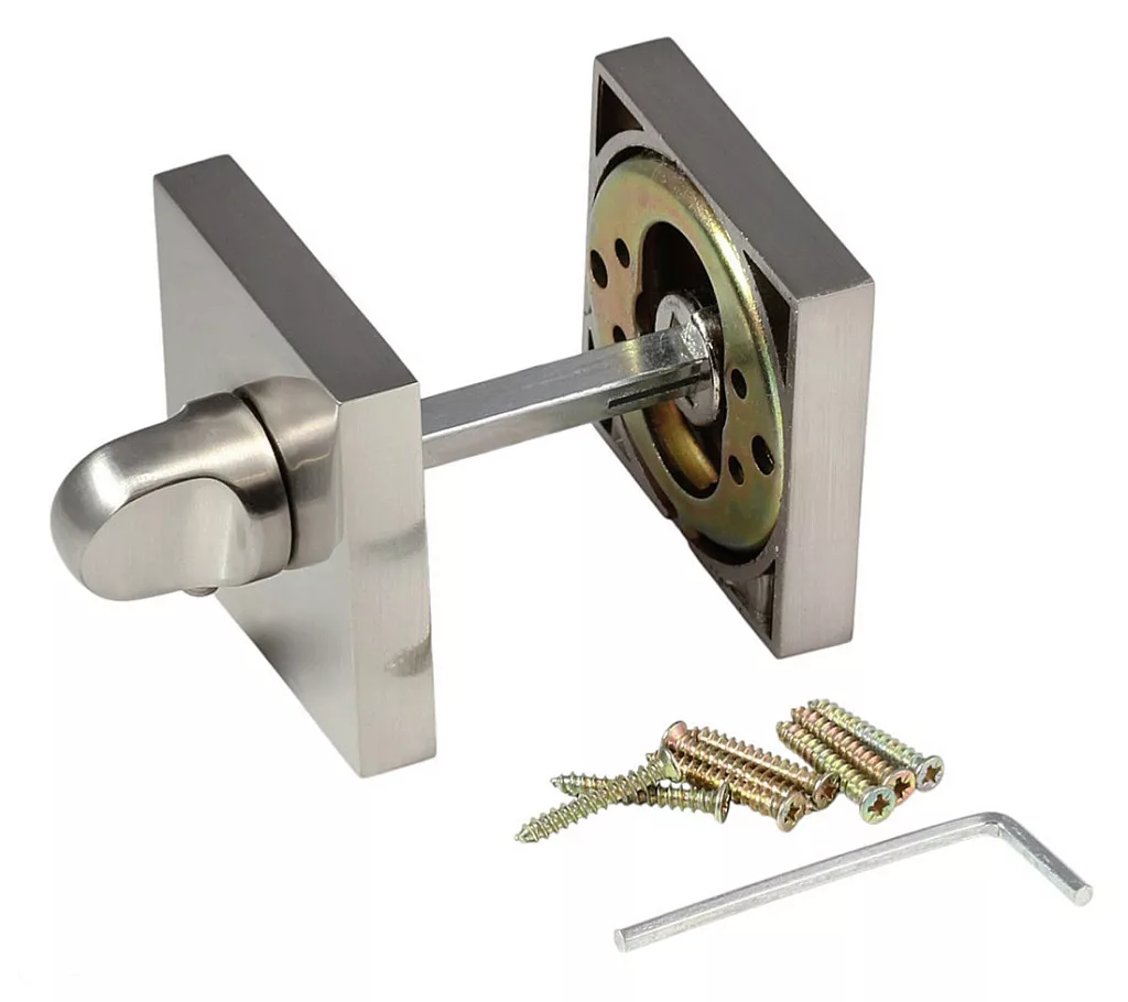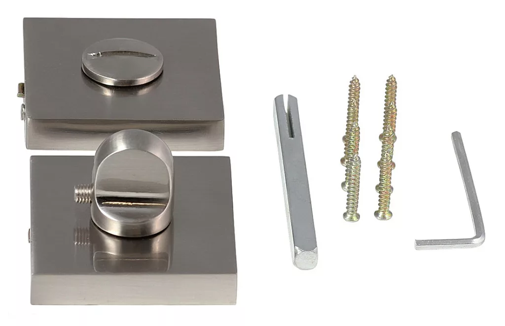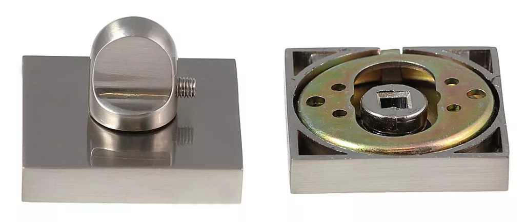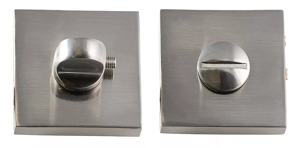 Szatén króm színű, rozettás kilincshez illeszkedő WC rozetta, amely elegáns megjelenést és megbízható működést biztosít fürdőszobai és mellékhelyiségi ajtókhoz.