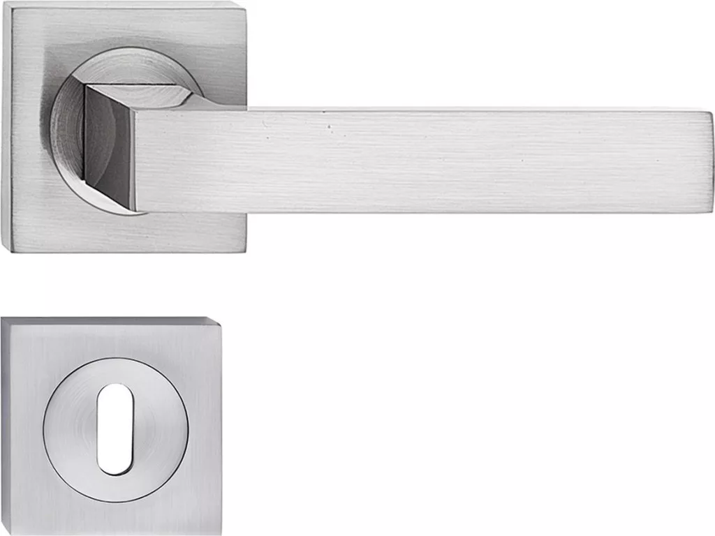 QUBIK ajtókilincs szögletes rozettás szálcsiszolt nikkel BB