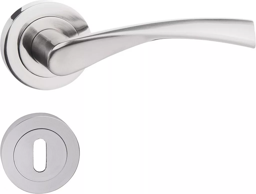 Prémium minőségű, rozettás ajtókilincs modern és elegáns kialakítással. Tartós fémkivitel, kényelmes fogás és megbízható működés, mely ideális választás bármilyen belső térhez.