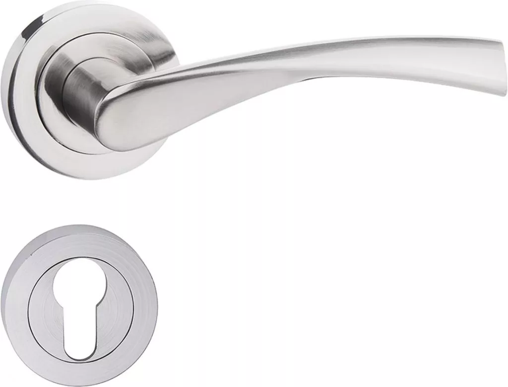 Prémium minőségű, rozettás ajtókilincs modern és elegáns kialakítással. Tartós fémkivitel, kényelmes fogás és megbízható működés, mely ideális választás bármilyen belső térhez.