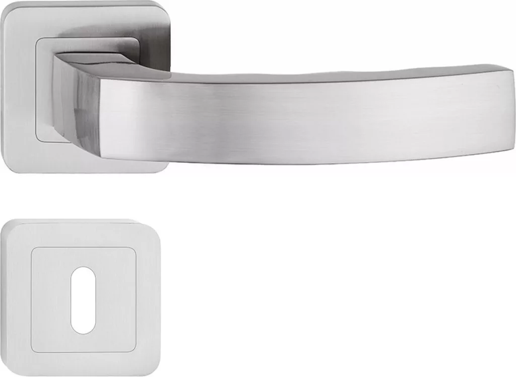 Prémium minőségű, rozettás ajtókilincs modern és elegáns kialakítással. Tartós fémkivitel, kényelmes fogás és megbízható működés, mely ideális választás bármilyen belső térhez.