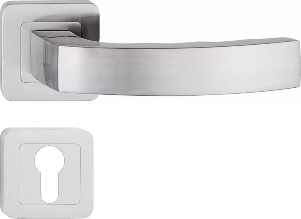 Prémium minőségű, rozettás ajtókilincs modern és elegáns kialakítással. Tartós fémkivitel, kényelmes fogás és megbízható működés, mely ideális választás bármilyen belső térhez.