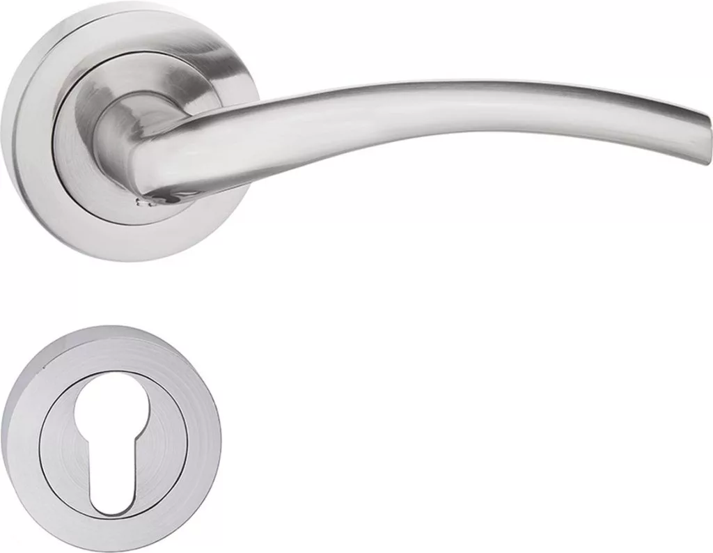 Prémium minőségű, rozettás ajtókilincs modern és elegáns kialakítással. Tartós fémkivitel, kényelmes fogás és megbízható működés, mely ideális választás bármilyen belső térhez.