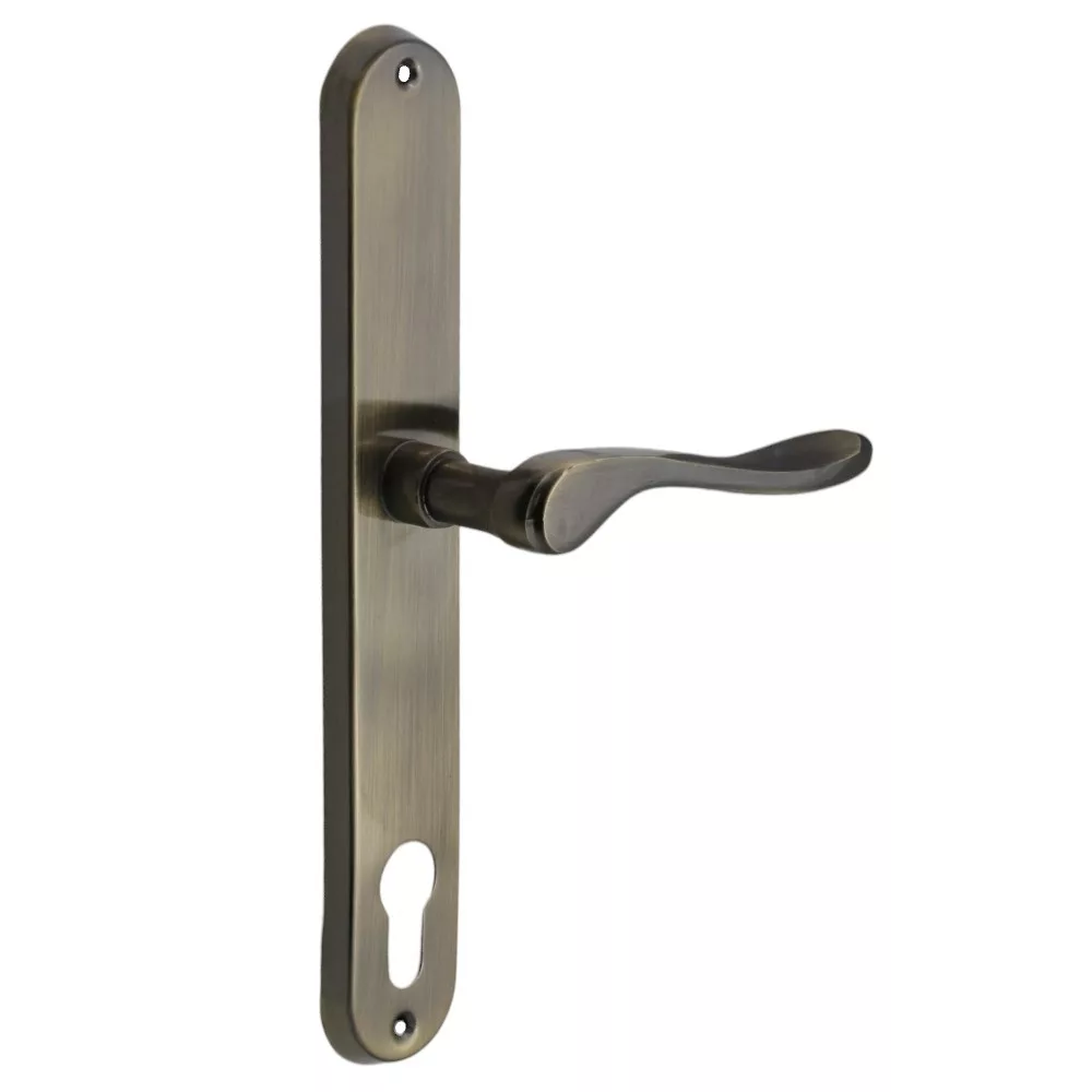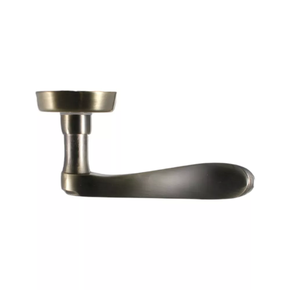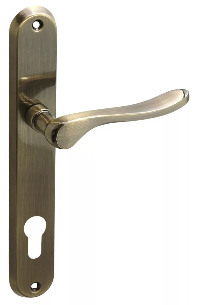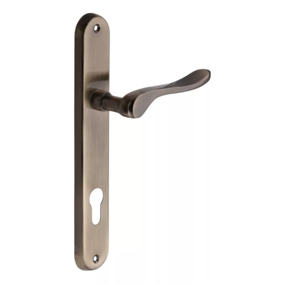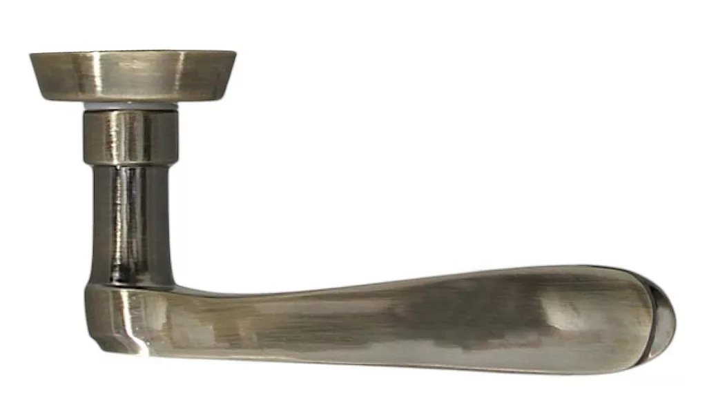 Clan de ușă antic, îndoit ușor, design confortabil. Mânerul ușii este realizat din material NECURU, a cărui suprafață este antichizată într-o culoare negru-gălbuie și protejată cu lac. Mâner acţionat cu arc. Dimensiunea etichetei ușii 239 mm x 36 mm Înălțimea tălpii: 10,5 mm. Dimensiune maner: 120 mm. Proiecție din panoul ușii: 60 mm.