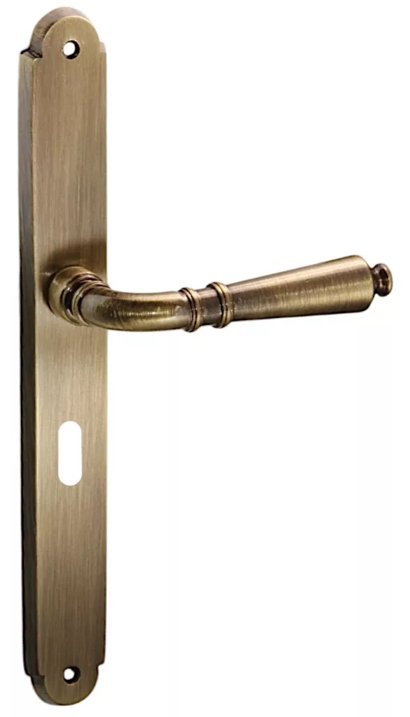 Set de mânere cu suprafață antică. Cu o suprafață texturată. Un produs elegant, curat, pentru eleganța de zi cu zi. Recomandăm acest tip tuturor pentru că poate fi montat cu ușurință pe toate tipurile de încuietori fără măsurare. Trebuie doar să decideți dacă aveți nevoie de un pumn pentru cheie sau cilindru. Punctele de fixare sunt acoperite cu elemente decorative din cupru, astfel încât designul lor este foarte estetic. Un șurub Allen suplimentar de fixare este plasat în mânerele ușii, făcând astfel mânerul ușii și mai robust. Suprafața sa strălucitoare de cupru face ca produsul să fie cu adevărat elegant. Piesa clasica, eleganta, confortabila.