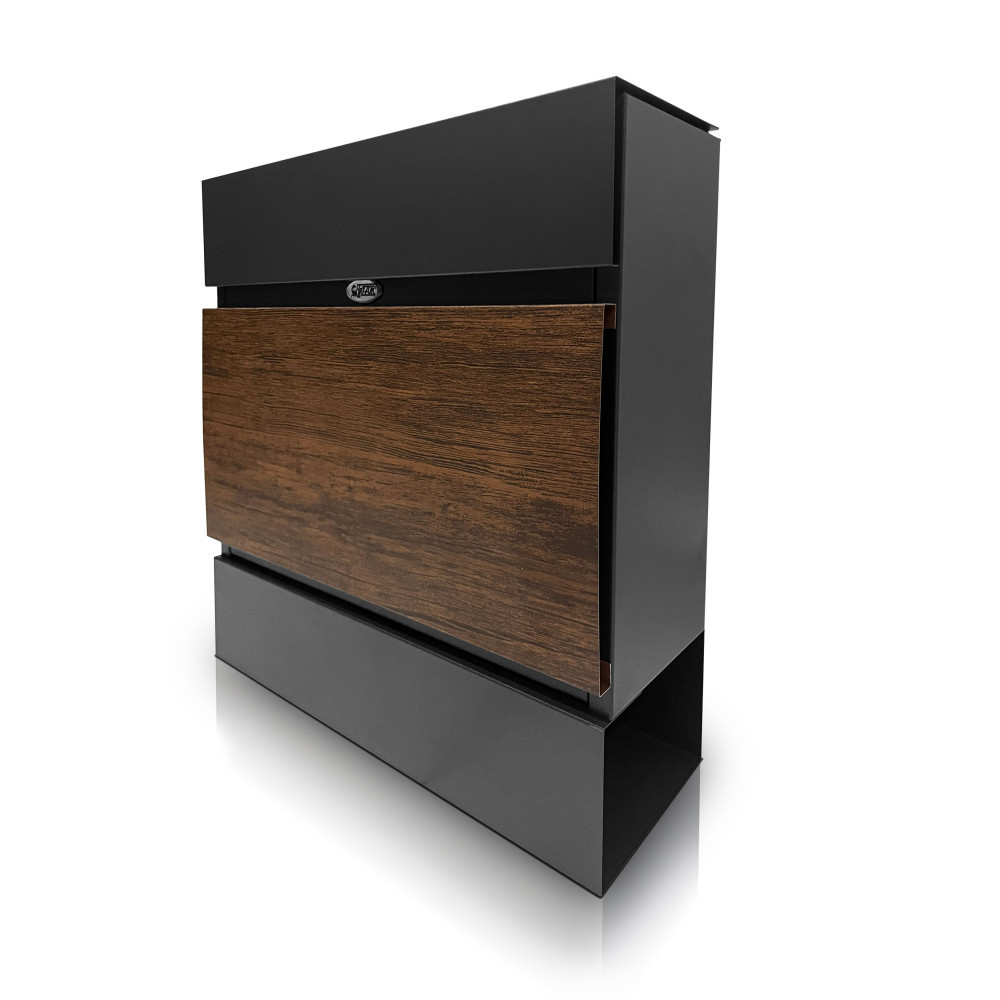 A leggyakrabban előforduló fa hatású kerítéselemekhez tervezett levélszekrény ideális választás minden olyan helyre, ahol fontos a harmonikus megjelenés. A termék 0,5 mm vastag horganyzott és felülkezelt acéllemezből készült, ami biztosítja a tartósságot és az időjárás elleni védelmet.