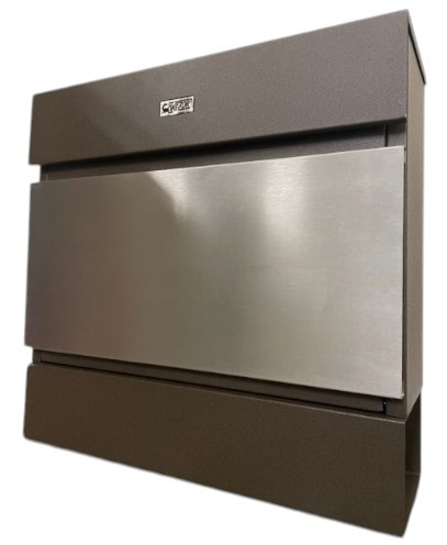 Modern, letisztult megjelenésű postaláda, az alsó részén reklámtartóval.