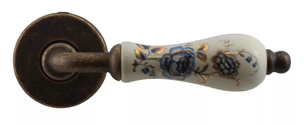 Samoha-Diána Rozetă rotundă Alb-Floral albastru Porțelan insert Patina Antic (Numai mânerul pe rozeta superioară)