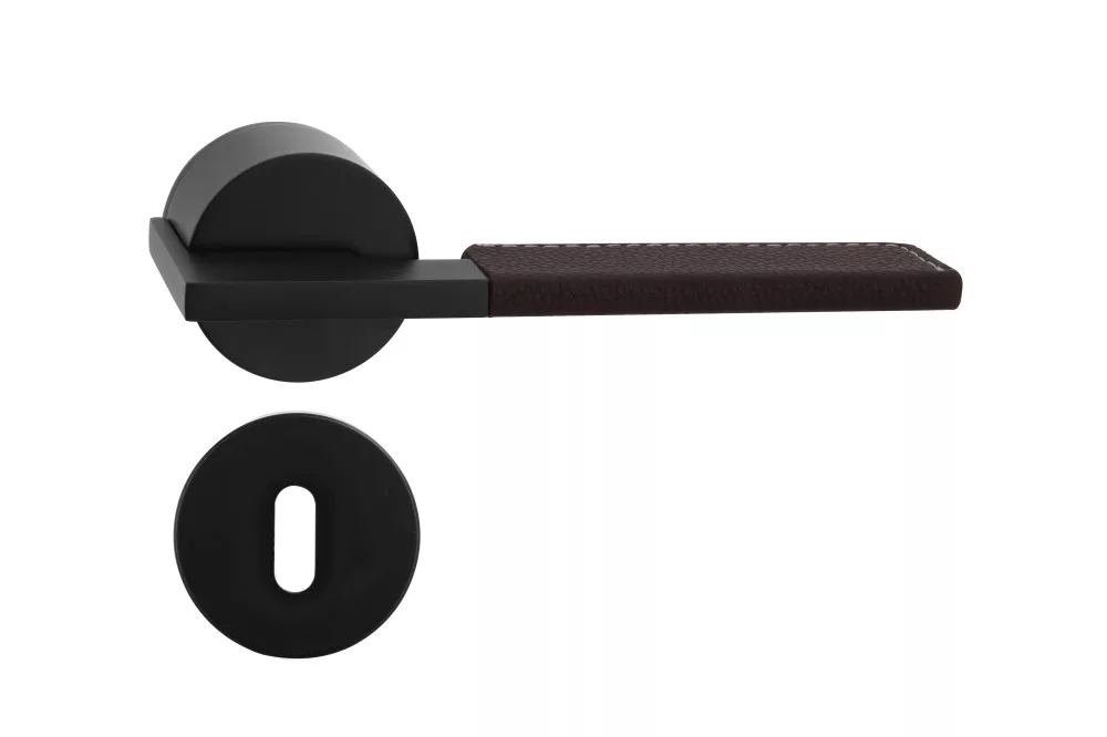 G02 Rozetă rotundă Exclusiv din piele maro inserată Set mâner Negru WC