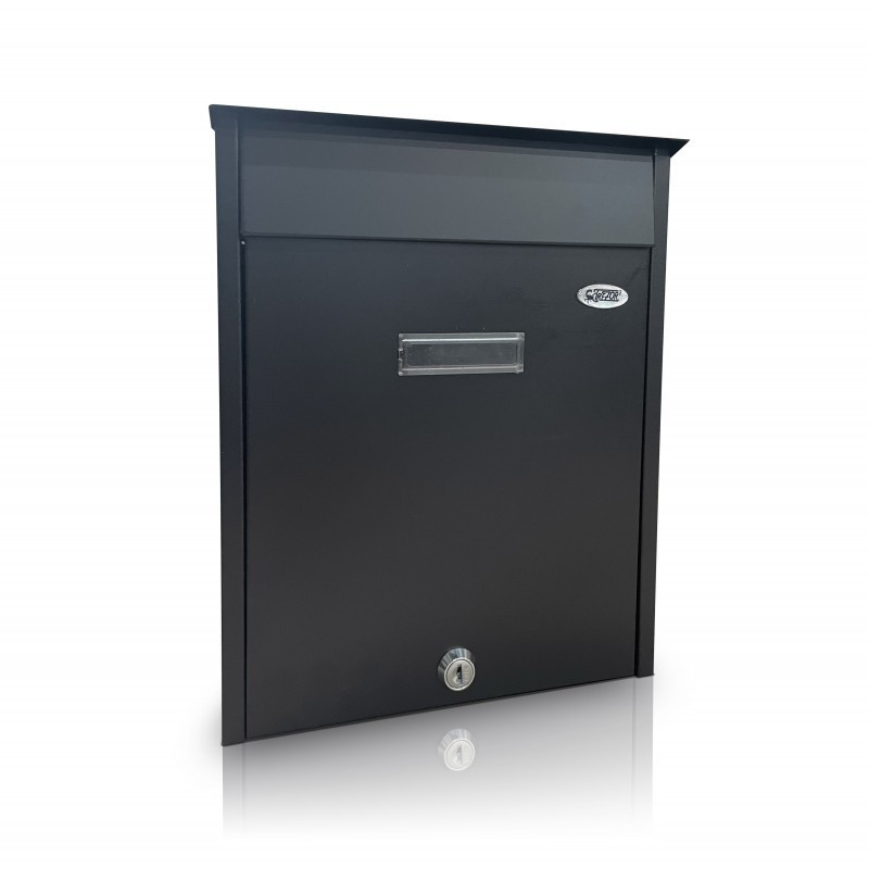 Datorită designului său cu două fețe, poate fi instalat cu ușurință pe o poartă sau un gard atât din exterior, cât și din interior. Articolele pot fi aruncate din ambele părți, iar dimensiunea deschiderilor de introducere permite ca articole mai groase să fie introduse fără deteriorare.