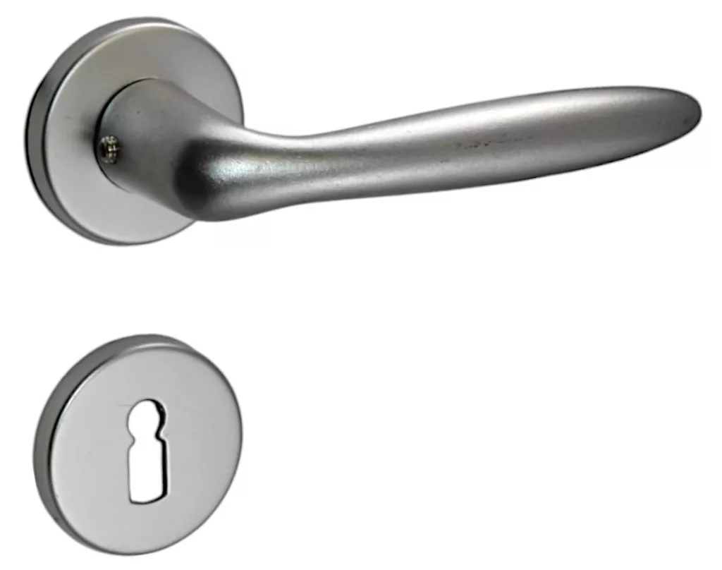 Mâner ușă rozetă cu suprafață argintie. Este, de asemenea, una populară în piețele maghiare.