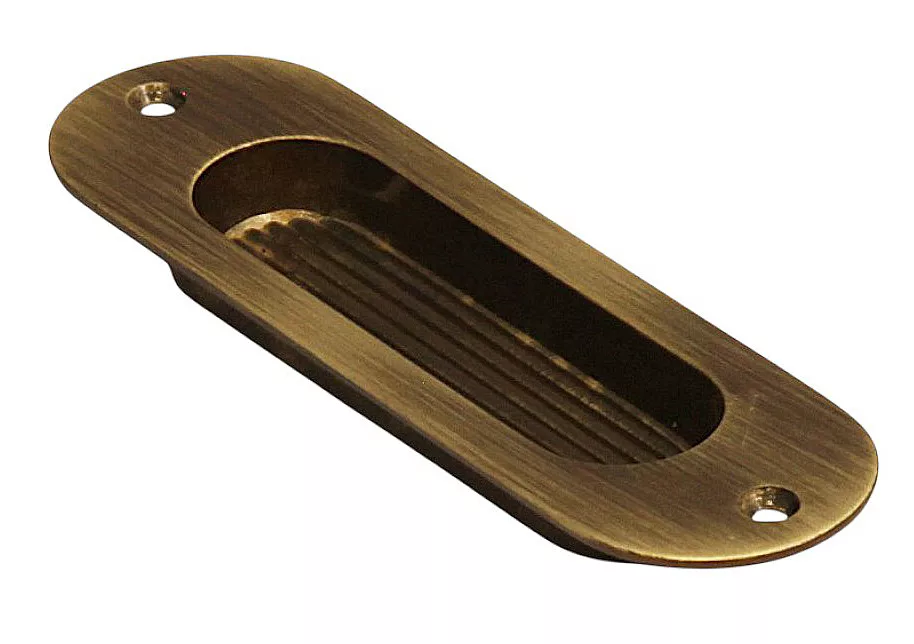 Mâner oval al ușii glisante cu suprafață maro antică. Produsul este fabricat din metal. Locațiile șuruburilor nu sunt vizibile. Se poate aplica prin lipire. Livrare: 2-3 zile lucratoare.