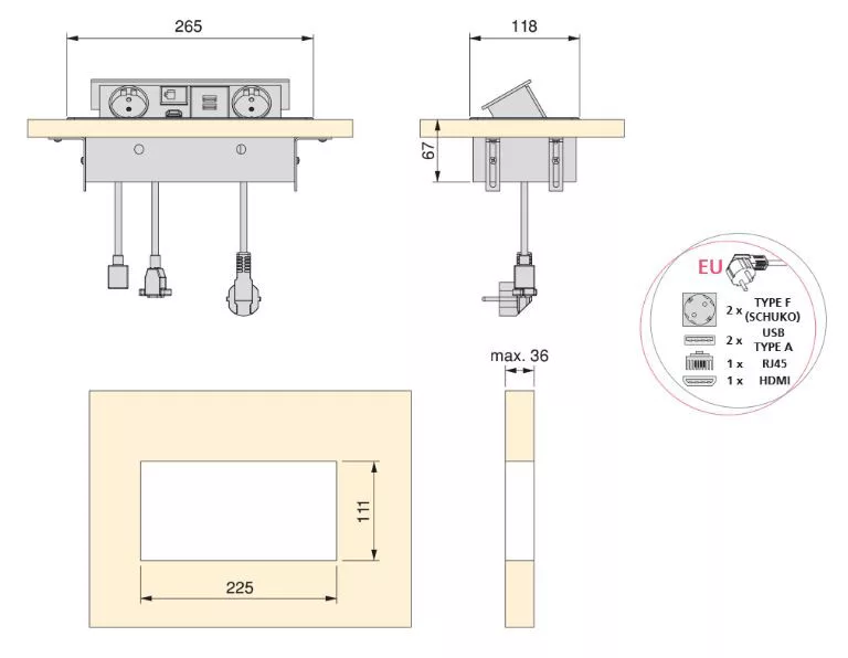 Konnektor Atom felbillenő HDMI alu 265x118x67mm