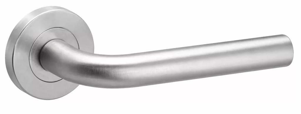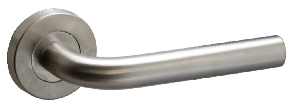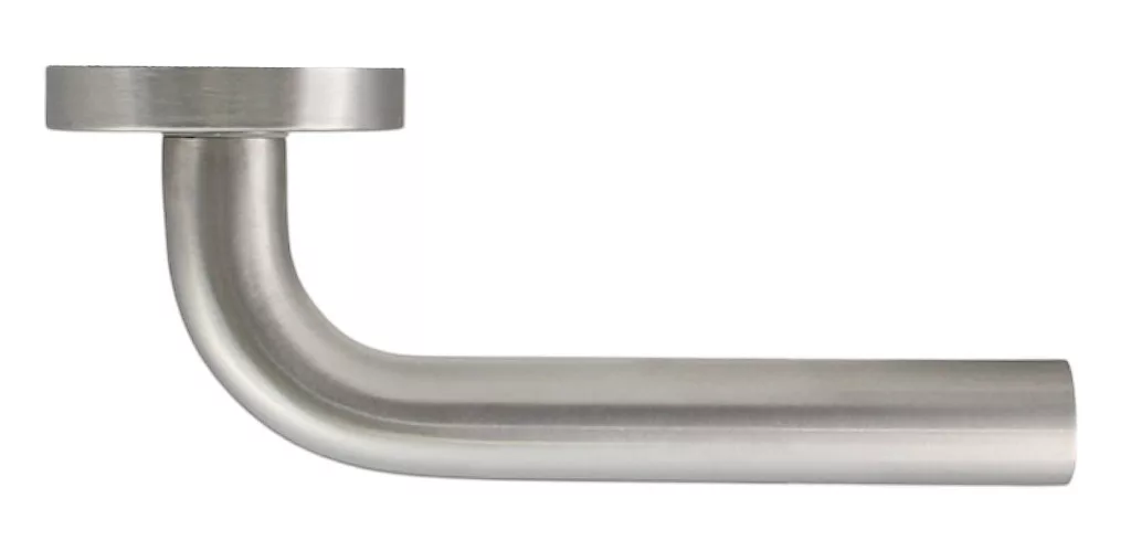 Egyszerű vonalú kényelmes fogású rozsdamentes acél ajtókilincs amely jól illeszkedik modern , minimál stílusú lakásokba és szintén jó választás lehet irodaházakba is!