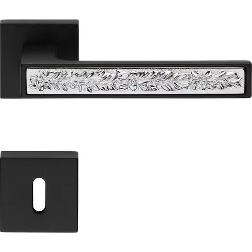 Linea Cali Zen Fusion negru mat - set de mânere rozetă pătrată crom strălucitor 1585 RB 019 CE
