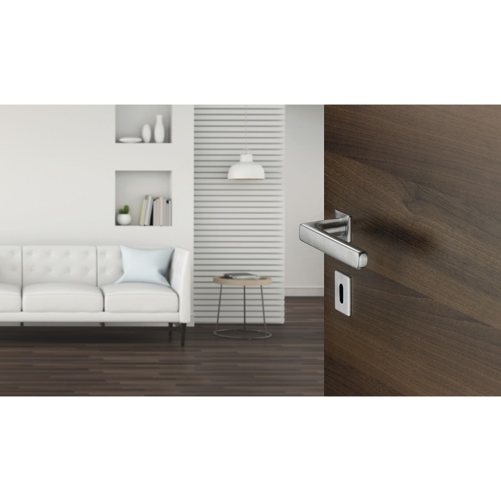 A rozettás kialakítás letisztult és elegáns megjelenést biztosít, miközben a könnyű és gyors felszerelés jelentősen megkönnyíti a beépítést új ajtók esetén és felújításkor egyaránt. Az ergonomikus forma kényelmes fogást és megbízható működést nyújt a mindennapi használat során.