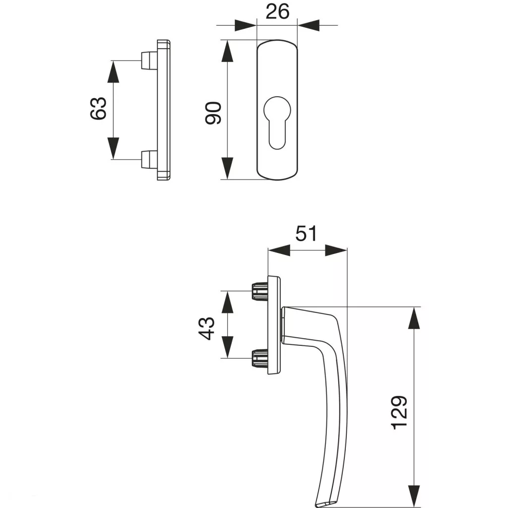 Külső kilincsrozetta: 26 x 63 mm