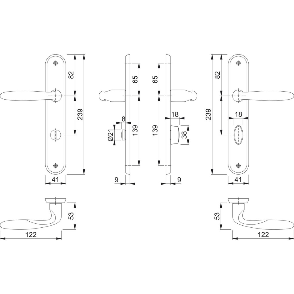 A garnitúra kialakítása igazodik a szabványos beltéri ajtóvastagságokhoz, így általános lakóingatlanokban, irodákban vagy panziókban is jól használható. A megfelelő zártesttel kombinálva kényelmes, biztonságos reteszelési lehetőséget biztosít a privát helyiségek számára.