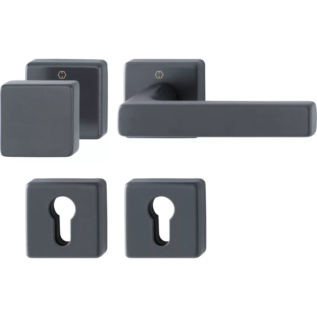 HOPPE gomb/kilincs garnitúra DALLAS szögletes rozettás, alumínium fekete matt