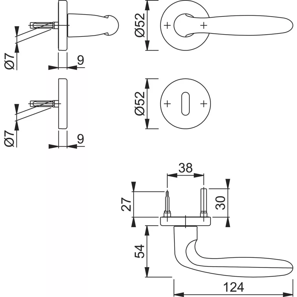 A rozettás kialakítás letisztult és elegáns megjelenést biztosít, miközben a könnyű és gyors felszerelés jelentősen megkönnyíti a beépítést új ajtók esetén és felújításkor egyaránt. Az ergonomikus forma kényelmes fogást és megbízható működést nyújt a mindennapi használat során.