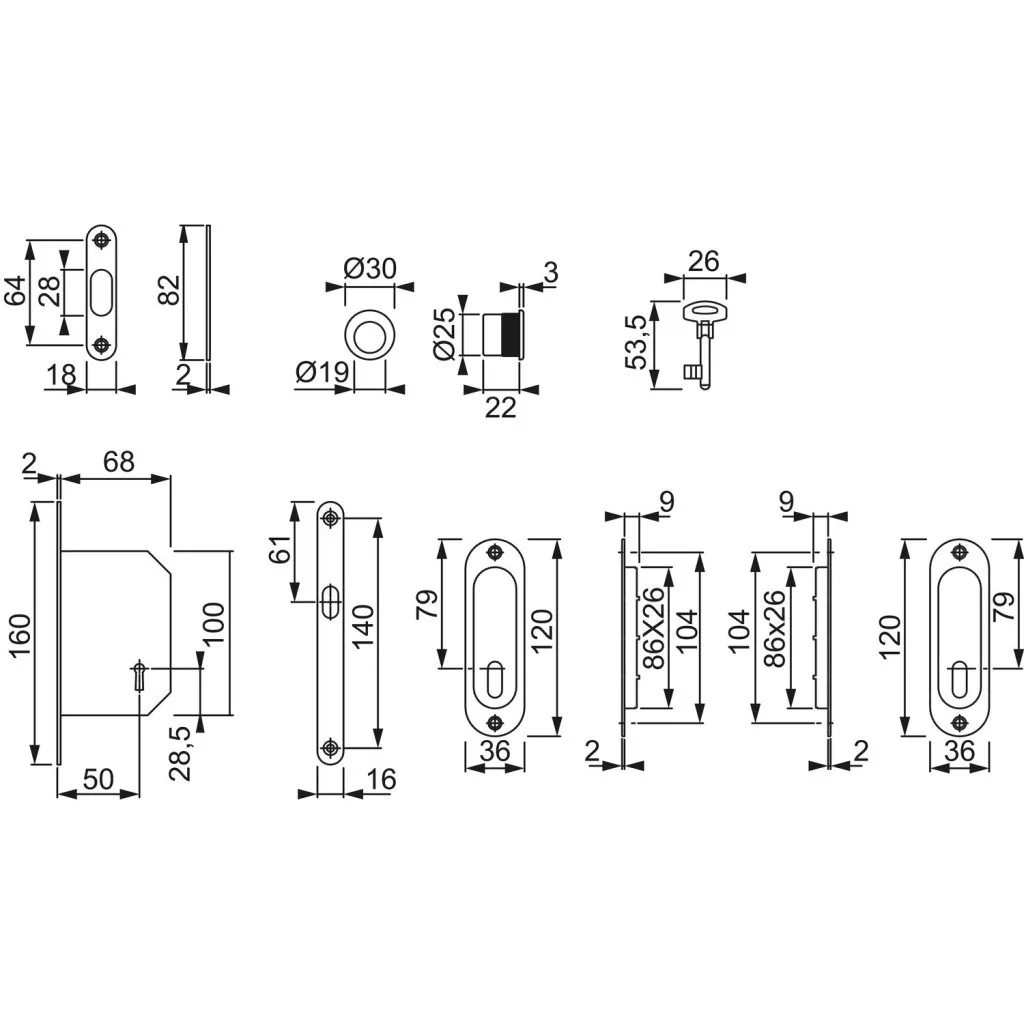 HOPPE tolóajtókagyló szett 4930 - zárral, ovális rozetta WC, F1 ezüst elox. alu