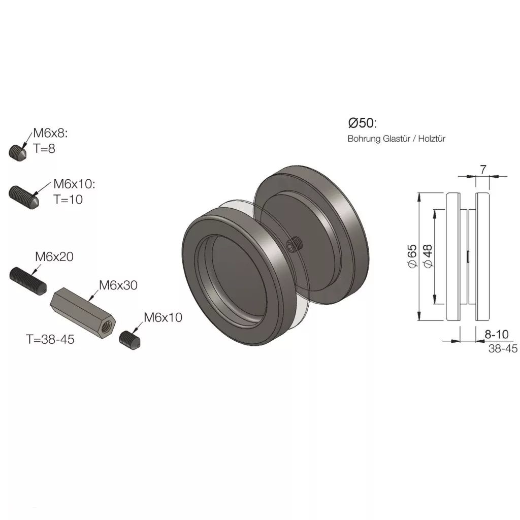 - rögzítés 8-10 mm-es üvegajtóhoz