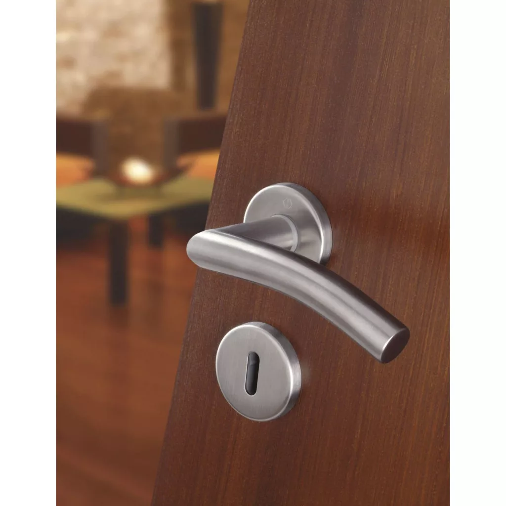 A rozettás kialakítás letisztult és elegáns megjelenést biztosít, miközben a könnyű és gyors felszerelés jelentősen megkönnyíti a beépítést új ajtók esetén és felújításkor egyaránt. Az ergonomikus forma kényelmes fogást és megbízható működést nyújt a mindennapi használat során.