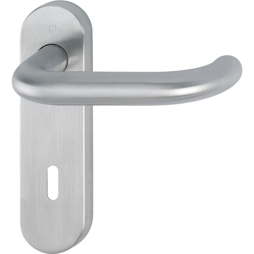 A nemesacél anyag kiválóan ellenáll a mindennapos igénybevételnek, ezért a garnitúra jól használható nagyforgalmú helyiségek ajtaján is. A matt felület kevésbé érzékeny az ujjlenyomatokra és kisebb karcokra, így hosszabb ideig megőrzi esztétikus megjelenését.