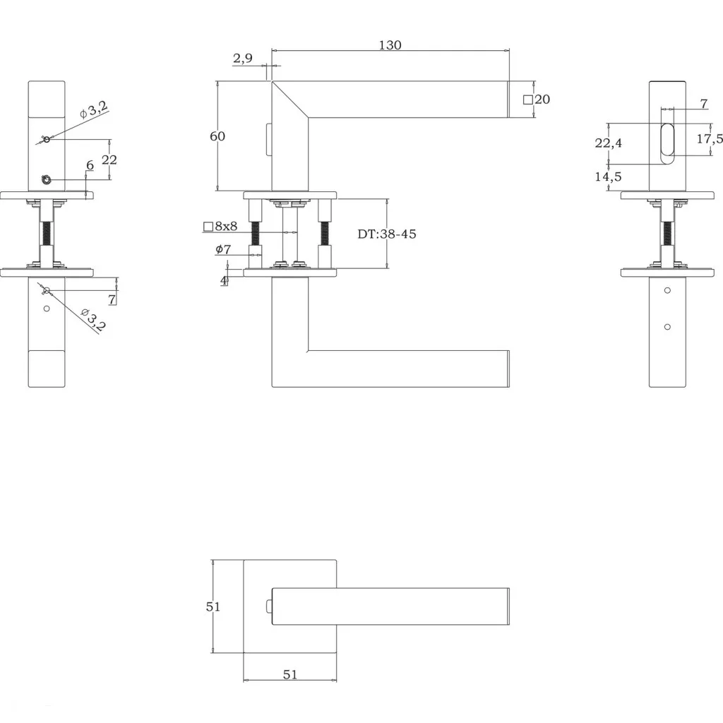 Marchesi kilincspár SQUARE Smart Look ajtóvast. 38-45 mm rozsdamentes fekete