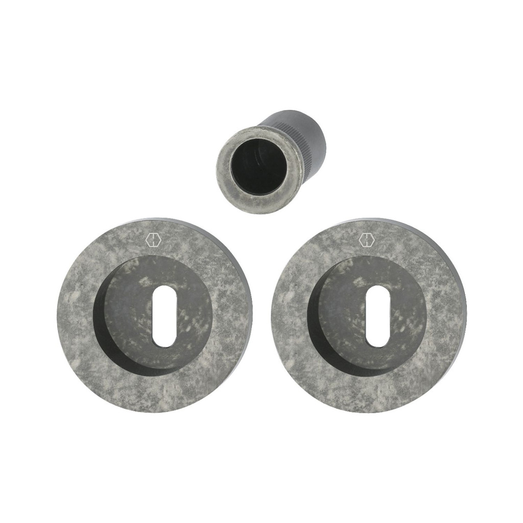 HOPPE tolóajtófogantyú-szett M471, kerek rozetta BB, ezüst antik réz