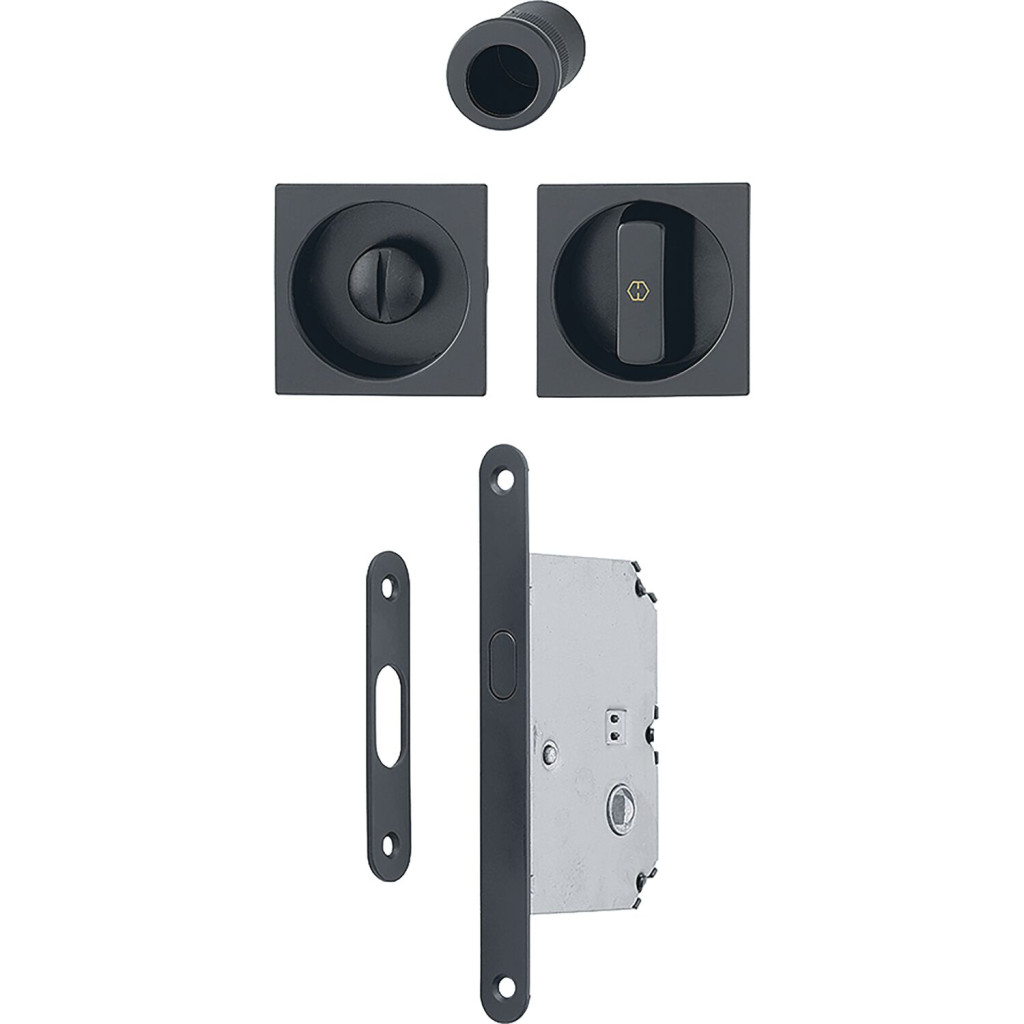 Tolóajtó kagylófogantyú szett 4921 - WC zárral, szögletes, fekete matt