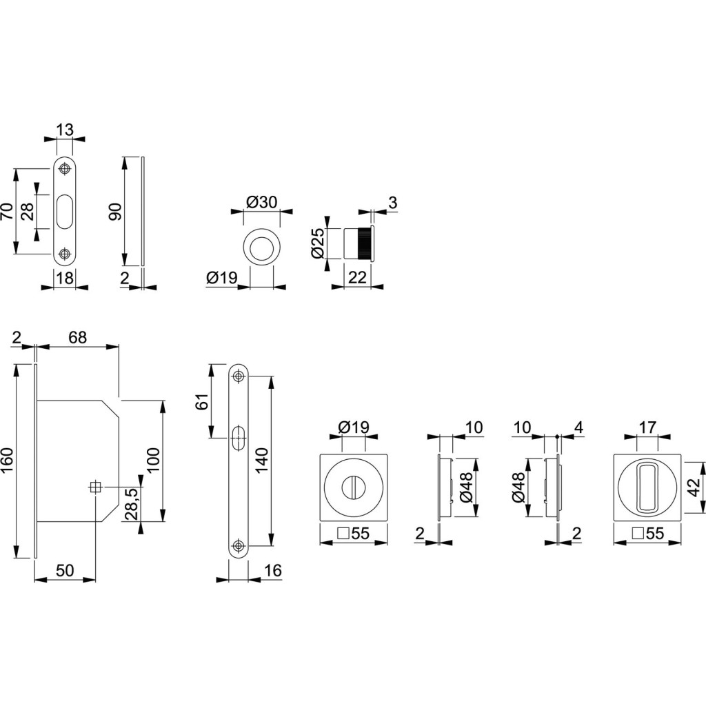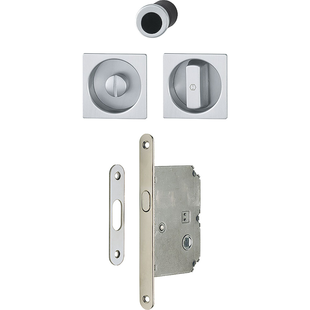 Tolóajtó kagylófogantyú szett 4921 - WC zárral, szögletes, krómozott matt