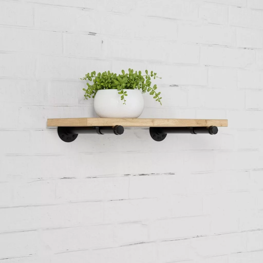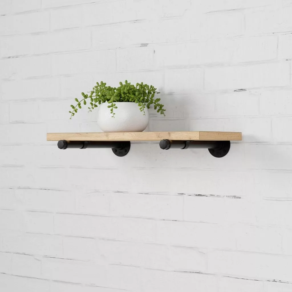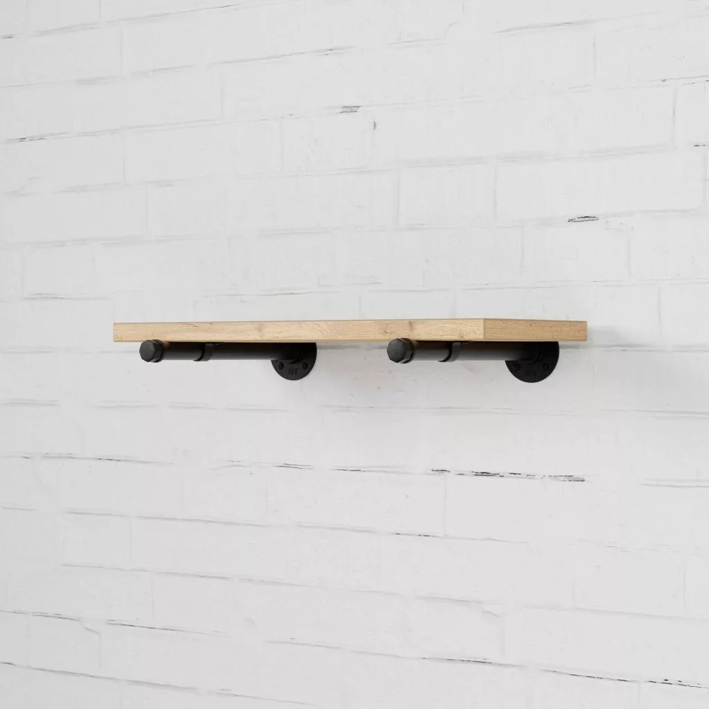 ÚJ! Egyedi, stílusos polcrendszer Rusticline cső alakú polcrendszerből. Itt a cső alakú rendszer tökéletesen betölti a konzolok szerepét. Maximum 300 mm mélységű asztallaphoz alkalmas.