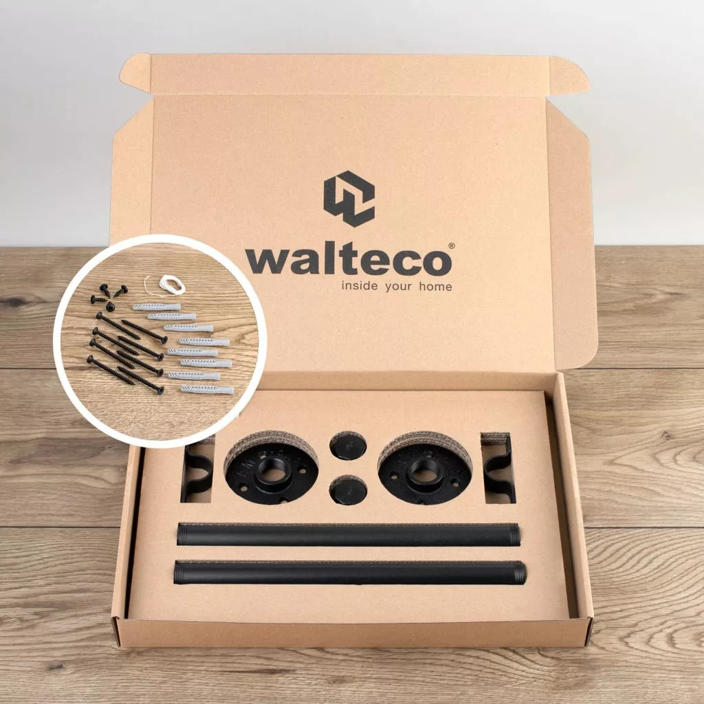 Könnyű összeszerelés: Az összeszereléshez szükséges összes alkatrész egy speciális ECO csomagban található! A teljes falra szereléshez szükséges tartozékok is kaphatók. A csomag nem tartalmaz fa polcot, amelyet saját ízlése szerint választhat. TIPP: Teflon menetet is mellékeltünk, amely segít az egyes illesztések meghúzásában, hogy minden alkatrész szilárdan csatlakozzon.