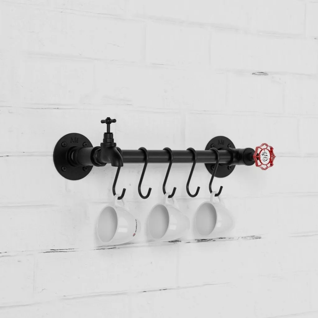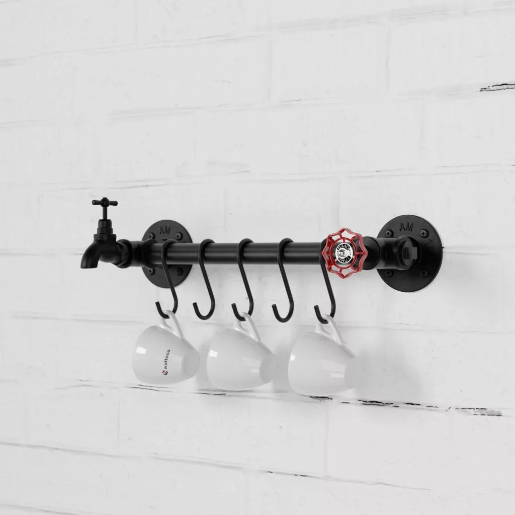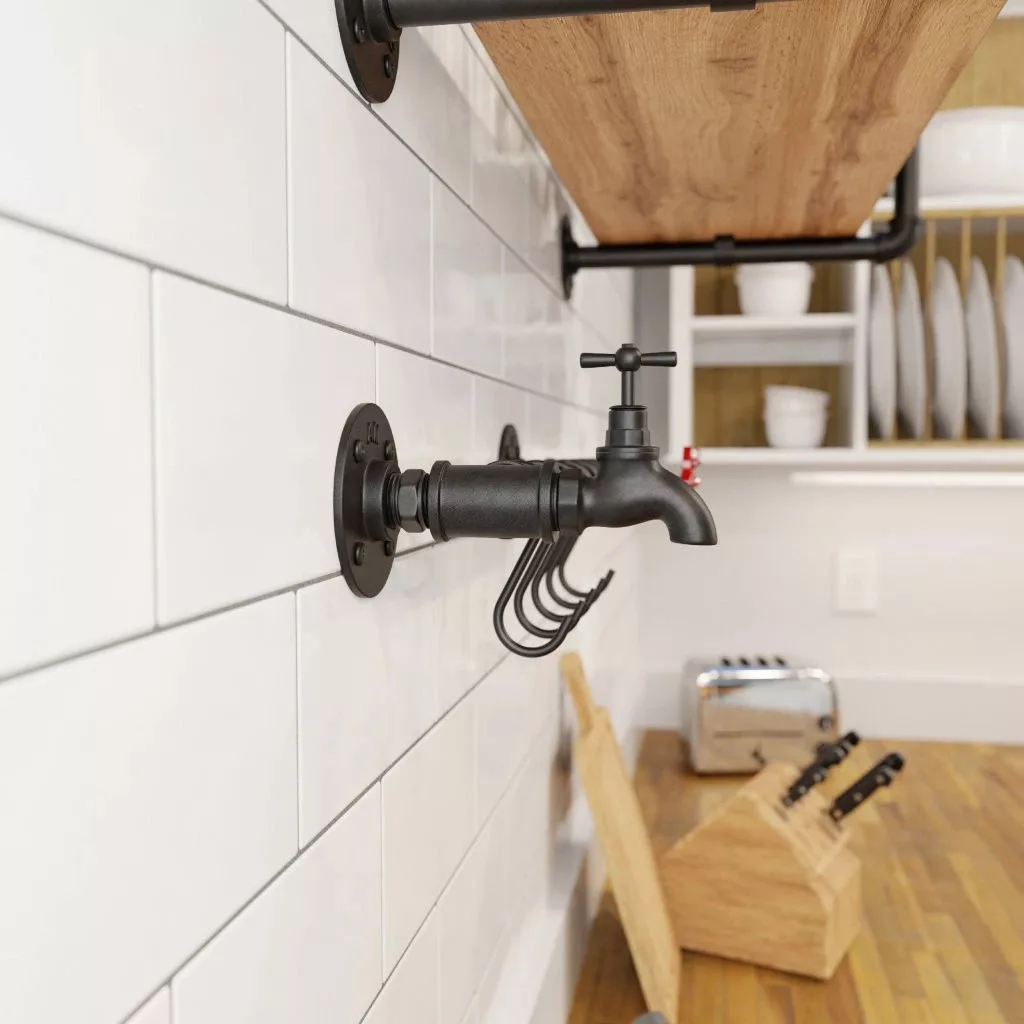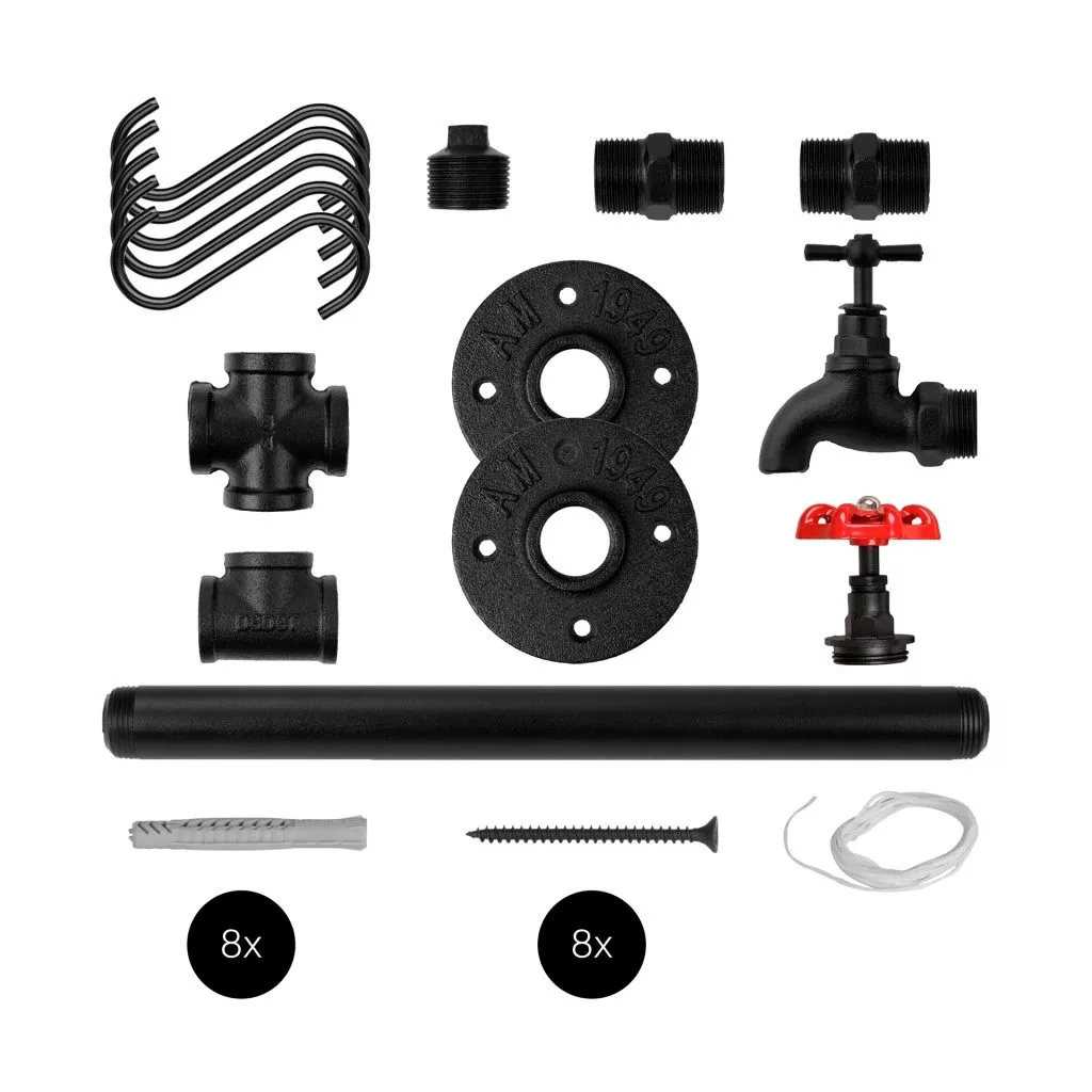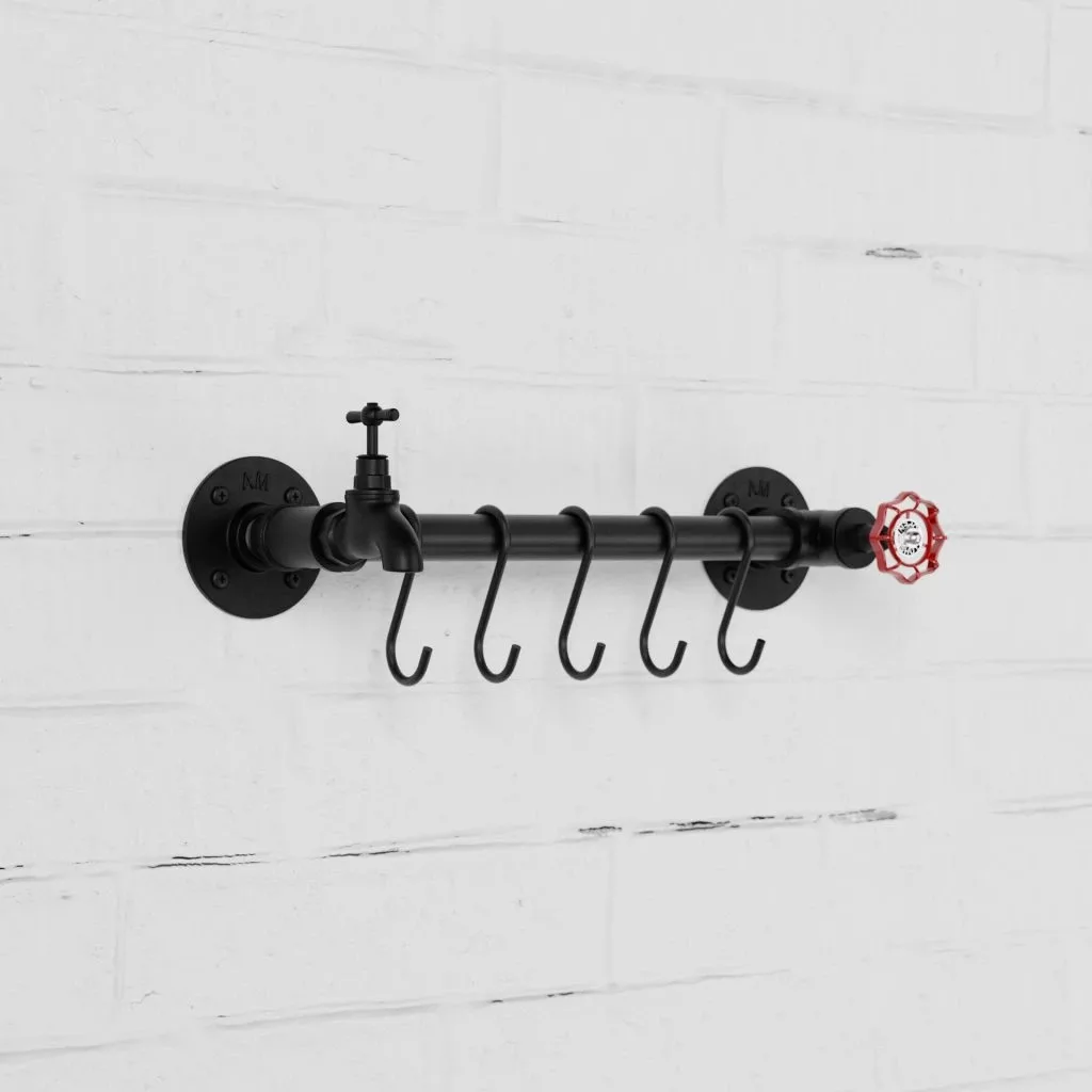 ÚJ! Egyedi készlet konyhai akasztórúd készítéséhez kampókkal a Rusticline csőszerű polcrendszerből.