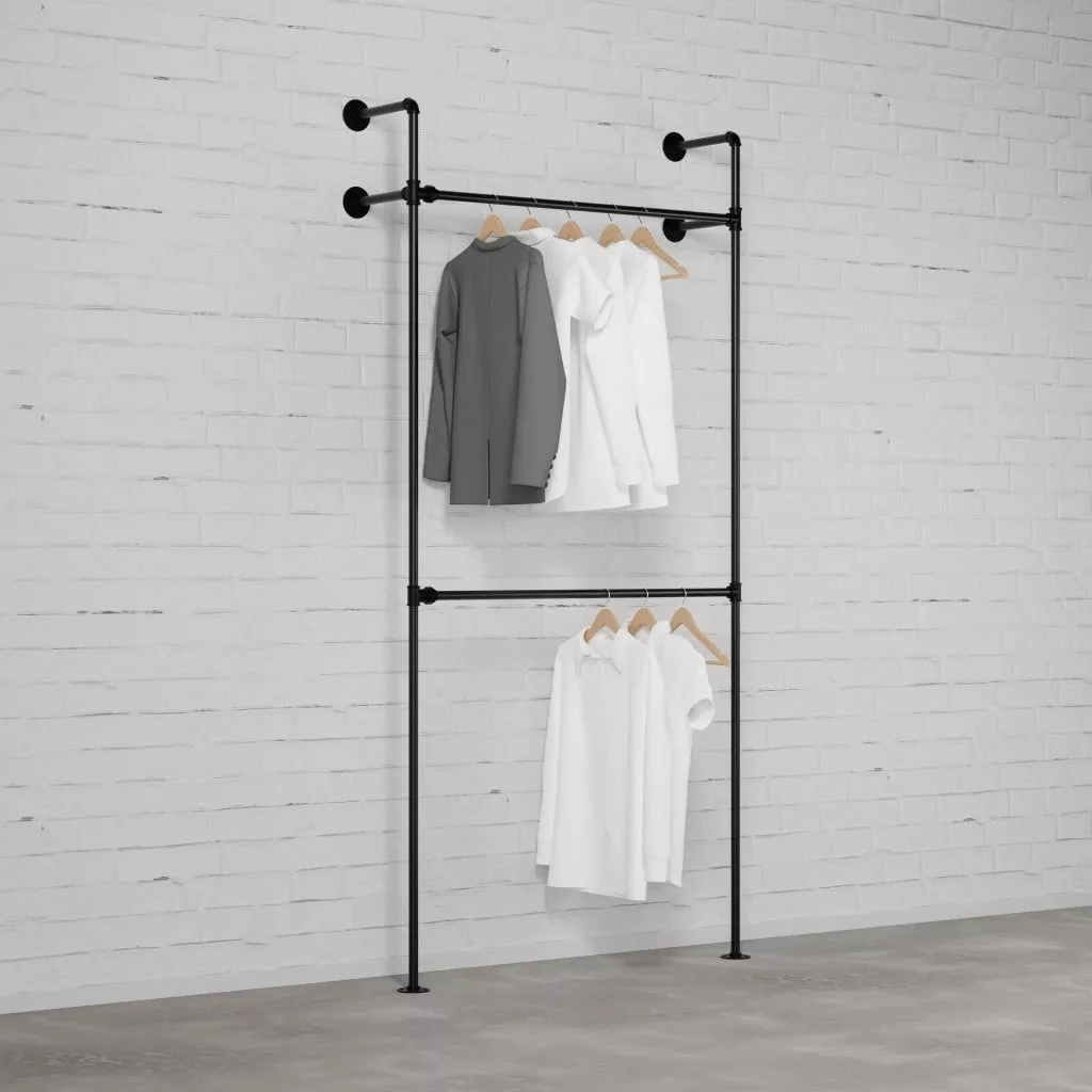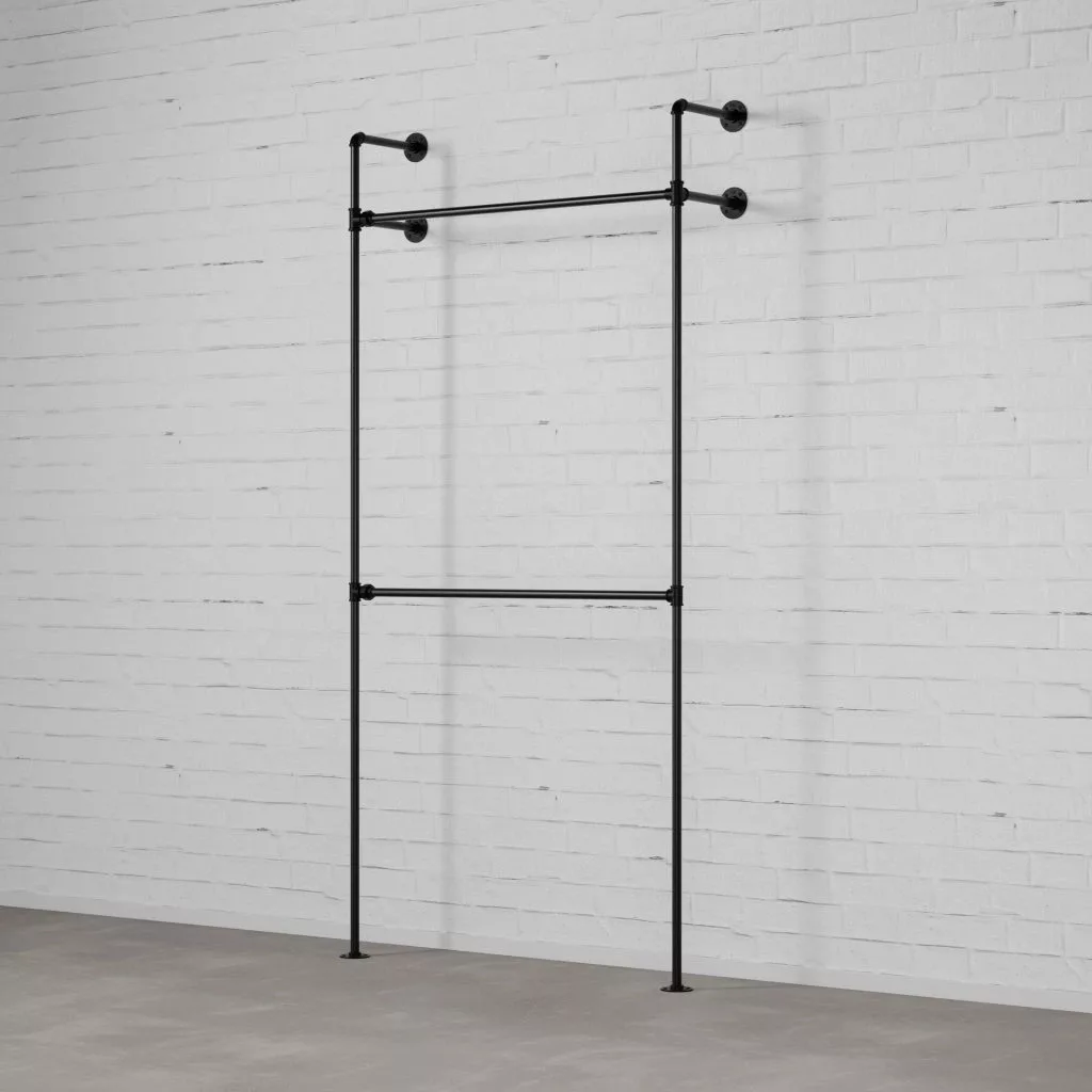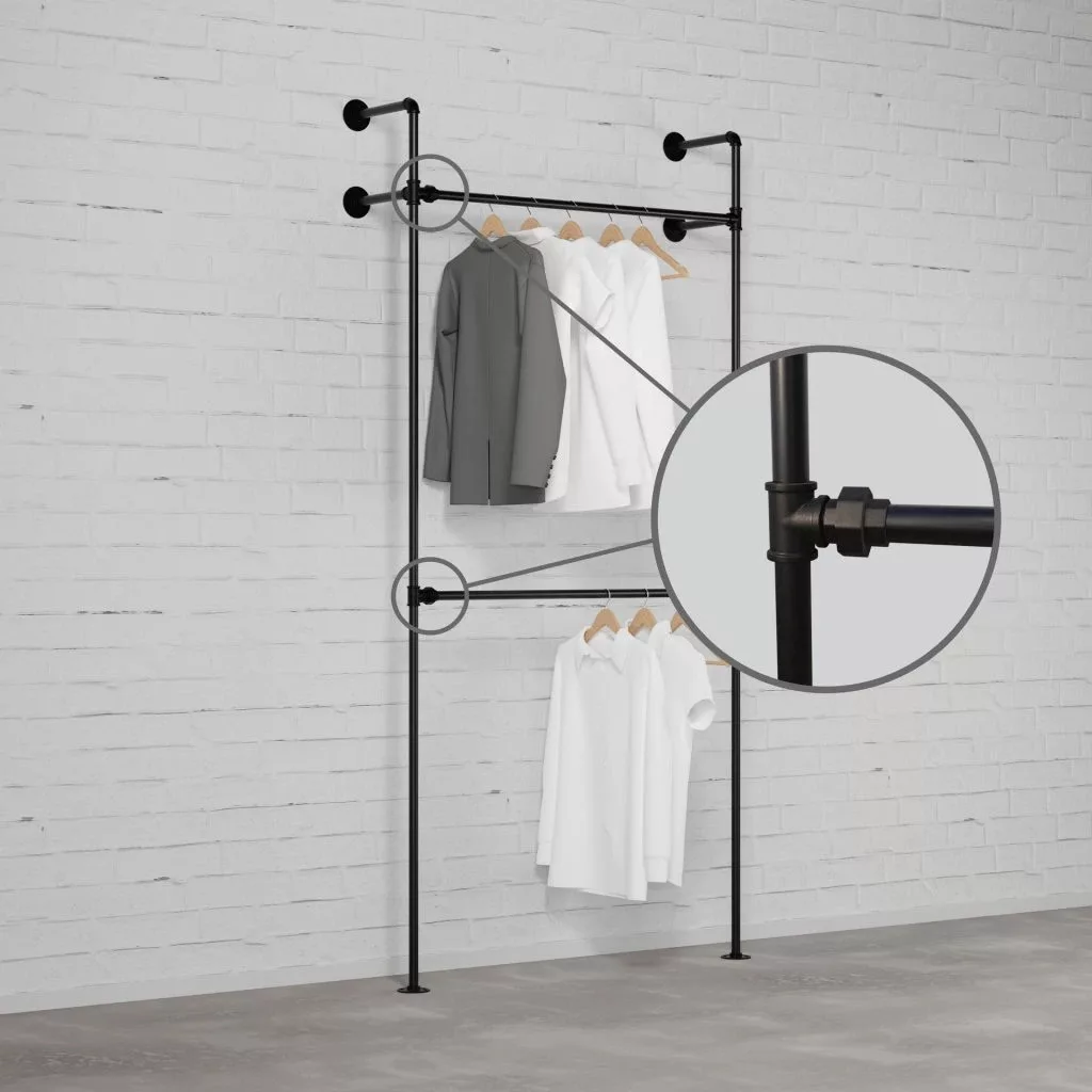 A Rusticline csőrendszerből készült, 2302 mm magas DARIO I DOUBLE gardróbszekrény különlegessé teszi öltözőjét, előszobáját, hálószobáját vagy ruhatárát. Variálhatóságának köszönhetően bármilyen térbe illeszkedik.