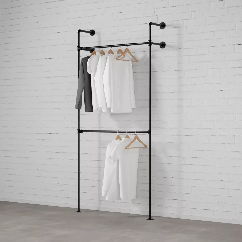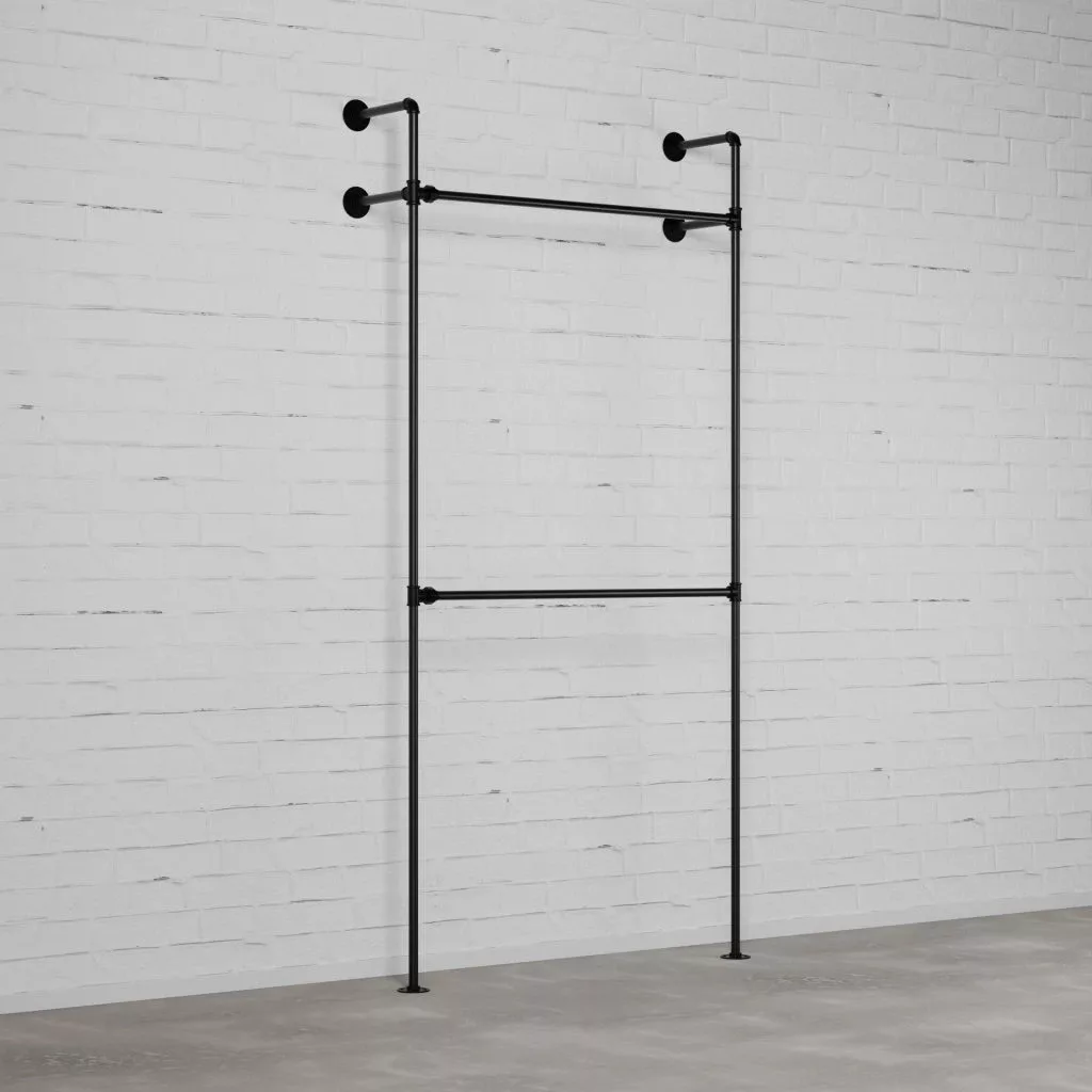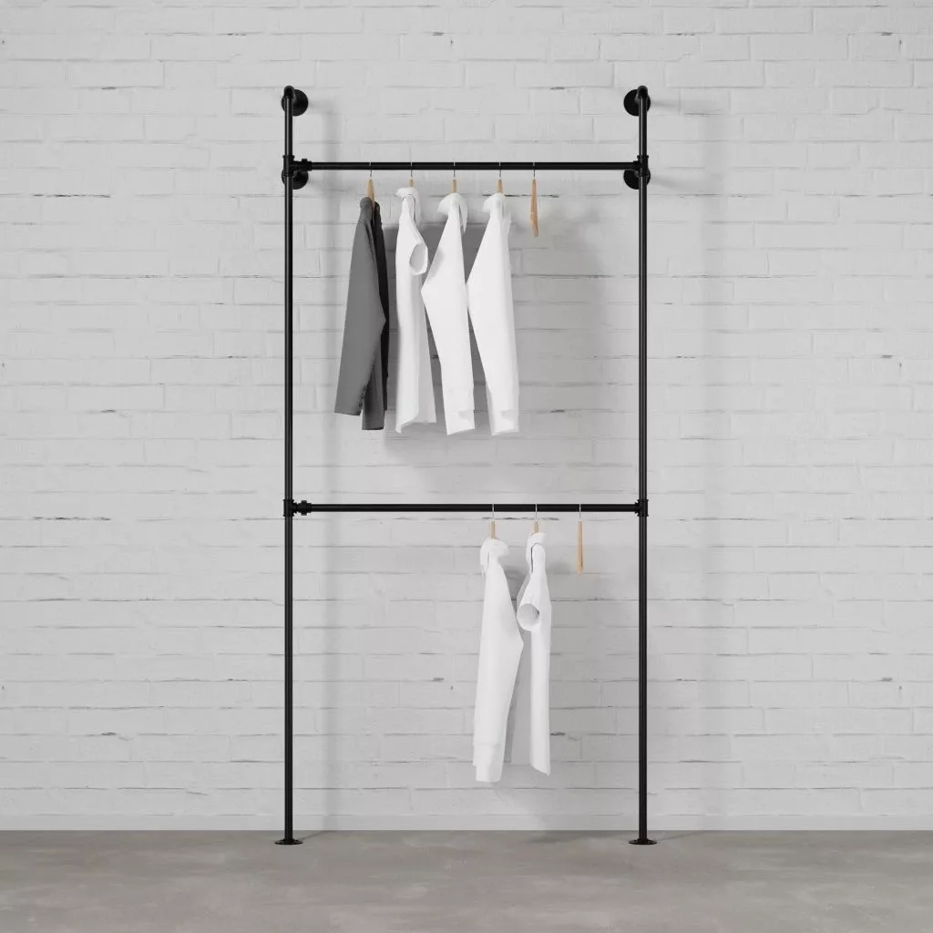 A Rusticline csőrendszerből készült, 2302 mm magas DARIO I DOUBLE gardróbszekrény különlegessé teszi öltözőjét, előszobáját, hálószobáját vagy ruhatárát. Variálhatóságának köszönhetően bármilyen térbe illeszkedik.