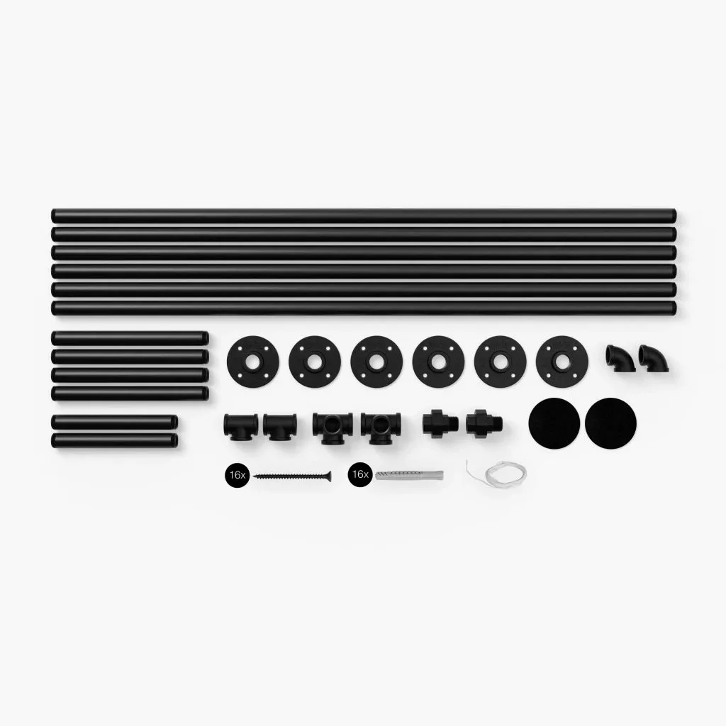 A bútorok vagy kiegészítők összeszerelése csak egy pillanatot vesz igénybe. A csövek, csatlakozók és egyéb alkatrészek menetesek, így csak össze kell csavarozni őket. Ezután a kereteket a deszkákhoz vagy a falhoz csavarozod, és kész is vagy.