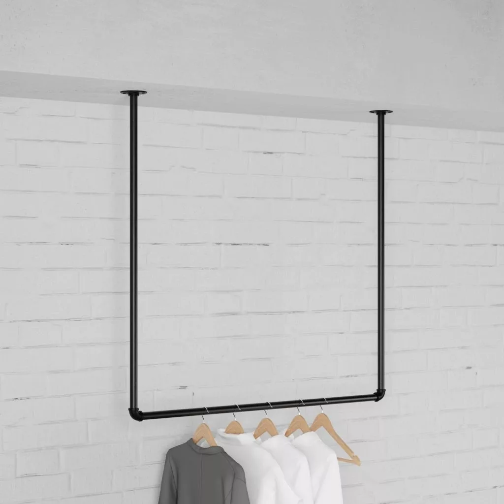 A Rusticline csőrendszerből készült AVA mennyezeti ruhaakasztó különlegessé teszi öltözőit, előszobáit, hálószobáit – a felhasználási mód változatos. 540 mm-es és 740 mm-es magasságok közül választhat különböző szélességekben. A mélység a kerettel együtt 85 mm.
