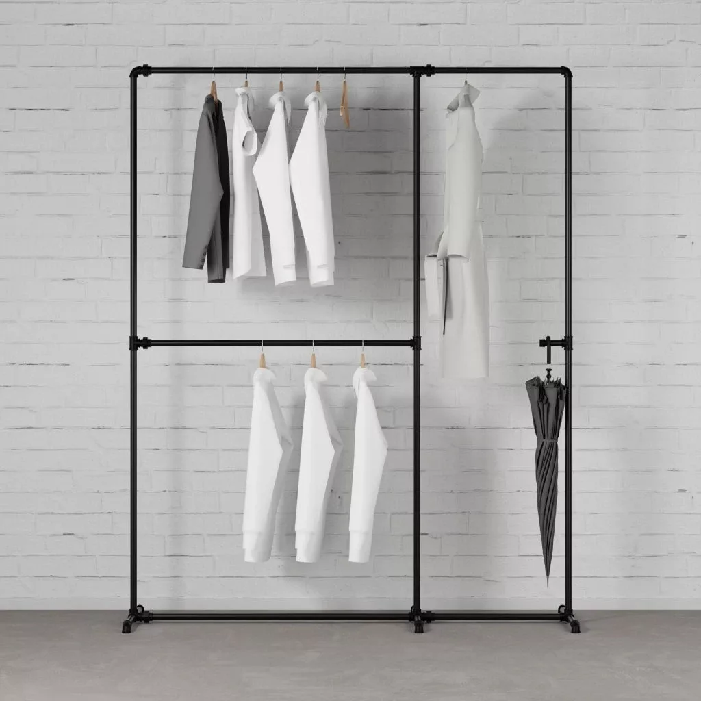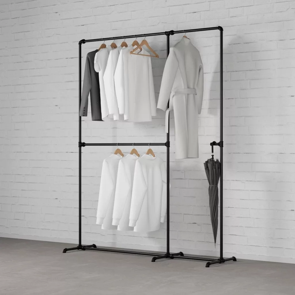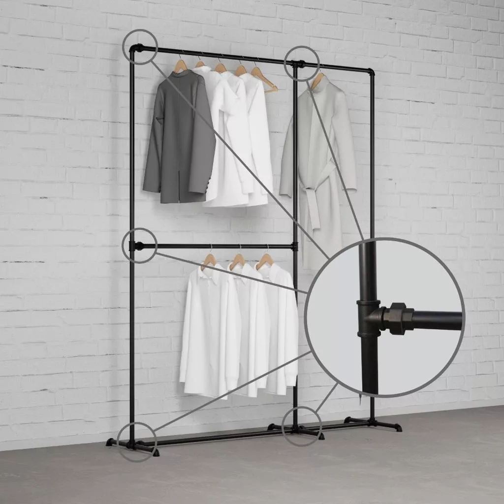 Vintage dizájn: Az ipari stílusú dupla ruhatartó különlegessé teszi gardróbját. Tökéletesen kiegészíti a többi Rusticline szettet és építőelemet.