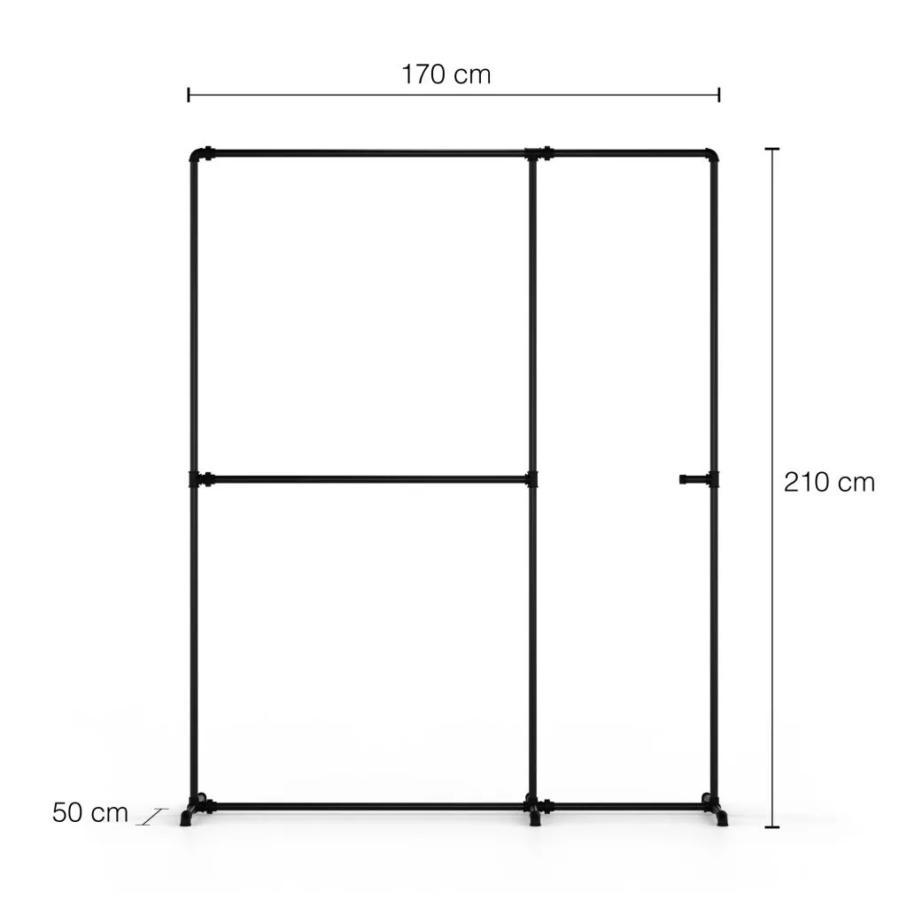 A Rusticline csőrendszerből készült, 2100 mm magas FREJA IV ruhatartó különlegessé teszi öltözőjét, előszobáját, hálószobáját vagy ruhatárát. Variálhatóságának köszönhetően bármilyen térbe illeszkedik, mivel az állványt bárhová áthelyezheti, ahol szüksége van rá.