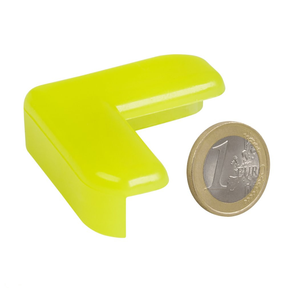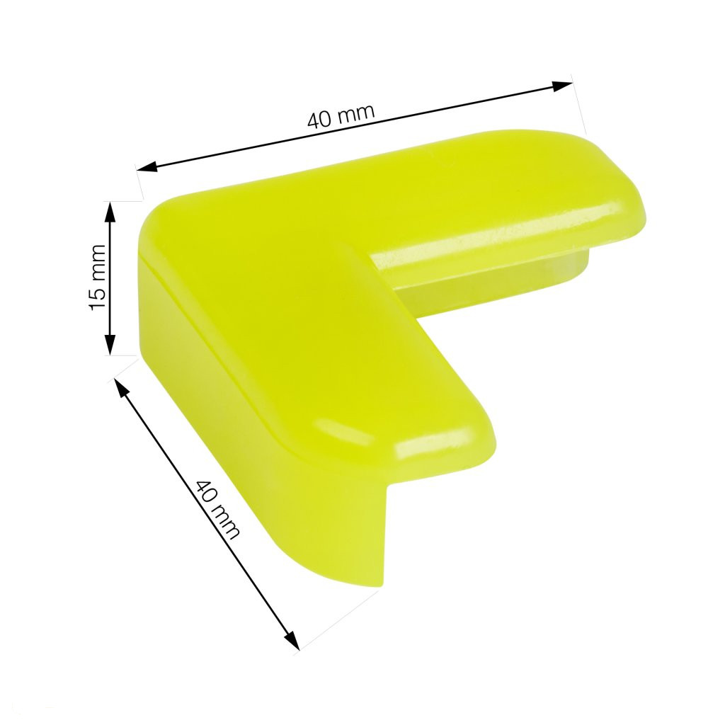 Fluoreszkáló sarokvédő, 40 mm széles és 40 mm magas. Véd az éles bútorok sarkai okozta sérülésektől.