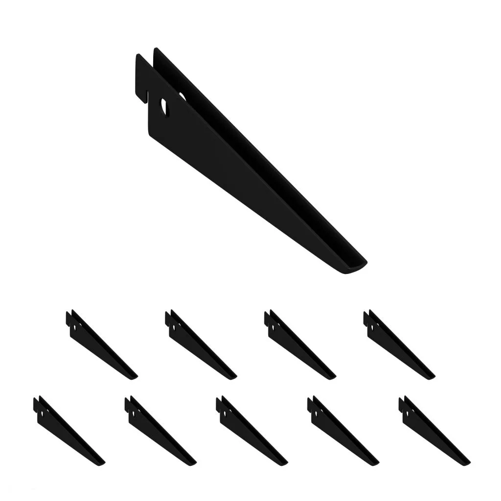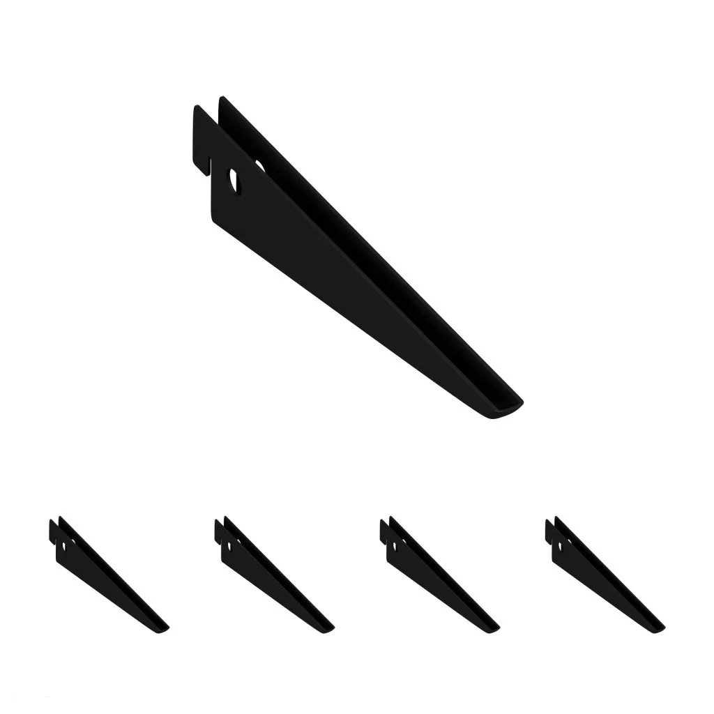 Ezeket a falhoz rögzíti, és ez alkotja a tartószerkezet alapját. Rögzítési lyukakkal és hornyokkal vannak ellátva, amelyekbe a gerendák könnyen bepattinthatók a polcokra. A belső tér stílusától függően válasszon fehér, matt fekete vagy ezüst színű változatot 500–2000 mm hosszúságban.