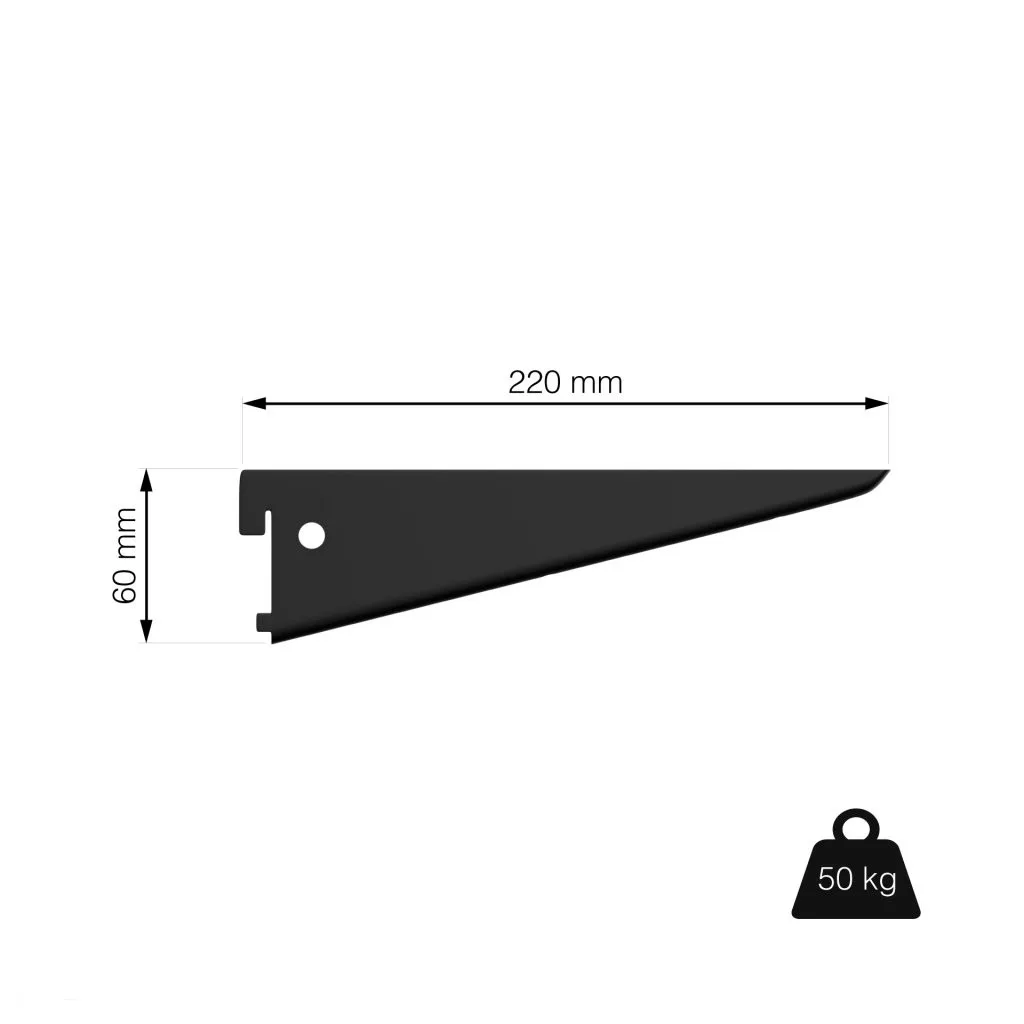 Matt fekete színű fém U-gerenda, 220 mm mély és 60 mm magas polcokhoz tervezve.