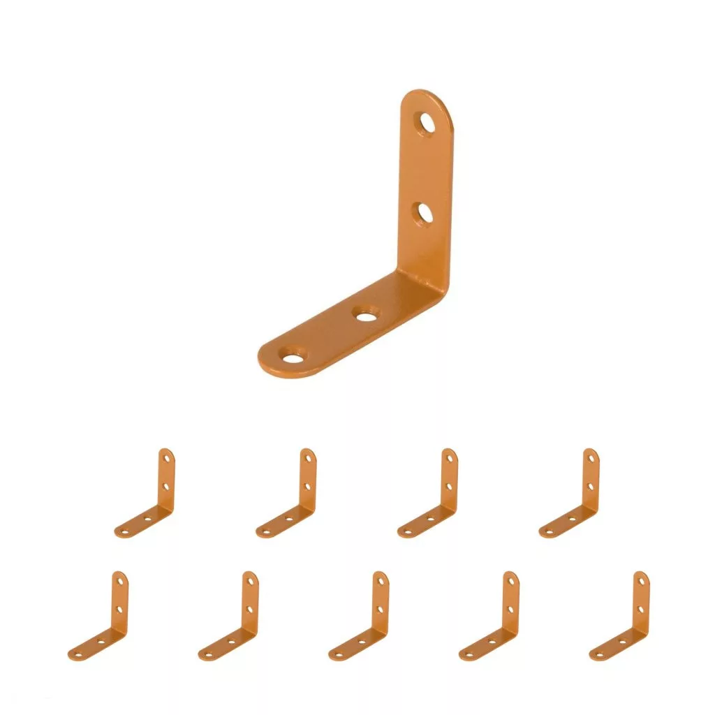 Bézs színű acél összekötő szögidom, 15 mm széles és 50 mm magas, süllyesztett rögzítőfuratokkal.