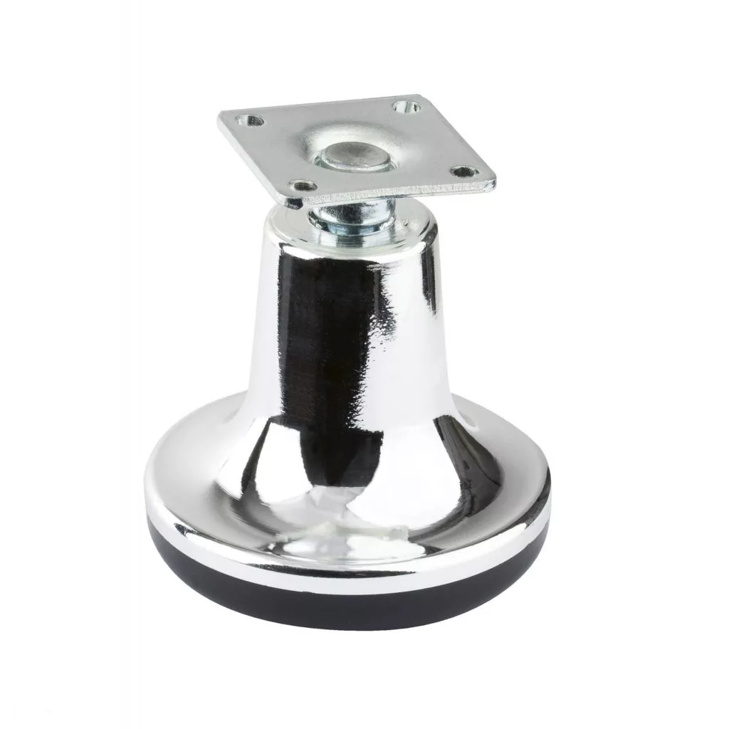 Bútorcsúszka elegáns krómozott kivitelben, lemezzel és fekete műanyag aljú csúszkával.