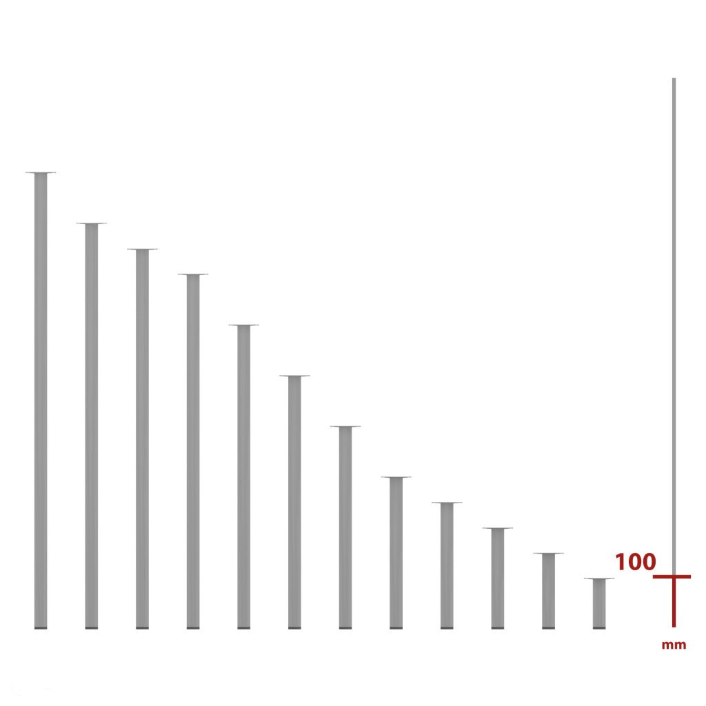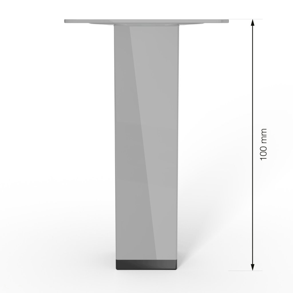 Szürke alumínium színű, négyzet alakú fém bútorláb, 25x25 mm-es profillal, 100 mm magas, 60x60 mm-es lemezzel és alsó műanyag csúszótalppal.