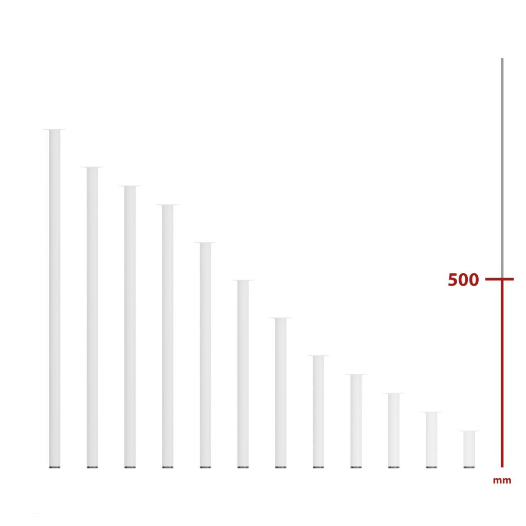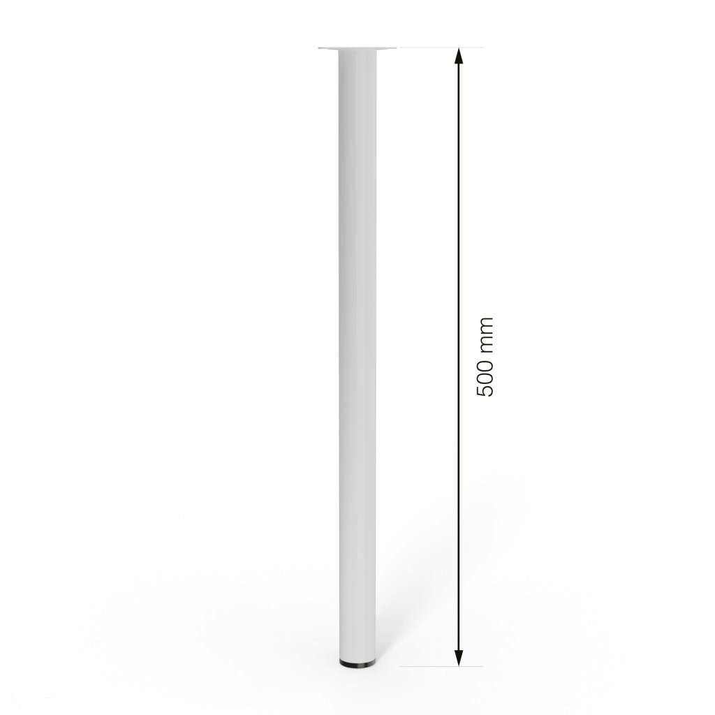 Kerek bútorláb, 500 mm magas, fehér színben, stílusos dizájndarabpá varázsolja bútorát. Méret: 60x60mm.